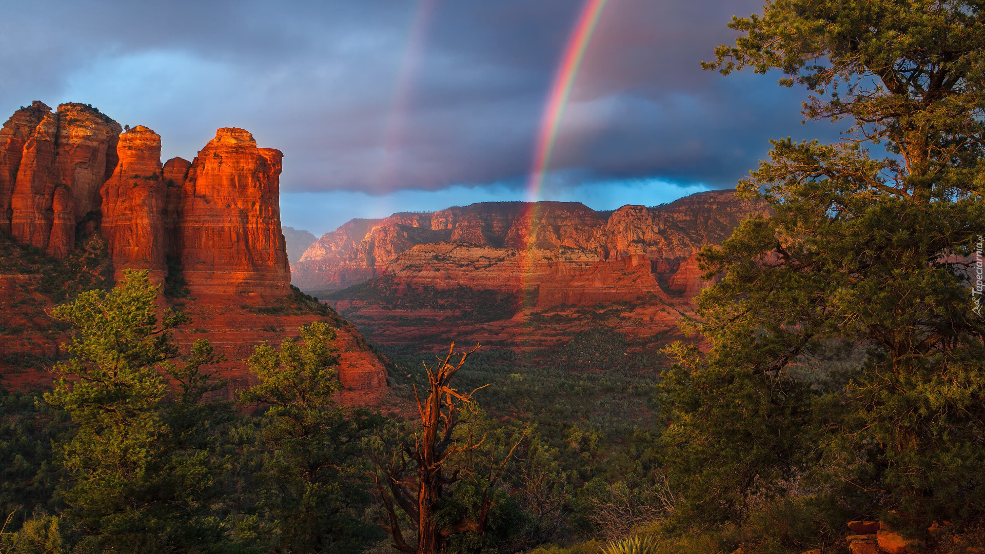 Edytor tapety: Tęcza nad czerwonymi skałami