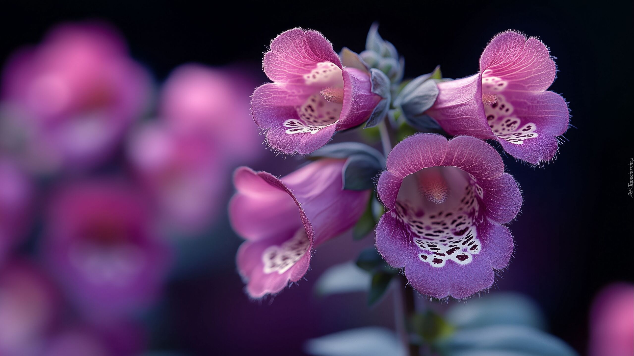 Edytor tapety: Fioletowe kwiaty naparstnicy na rozmytym tle