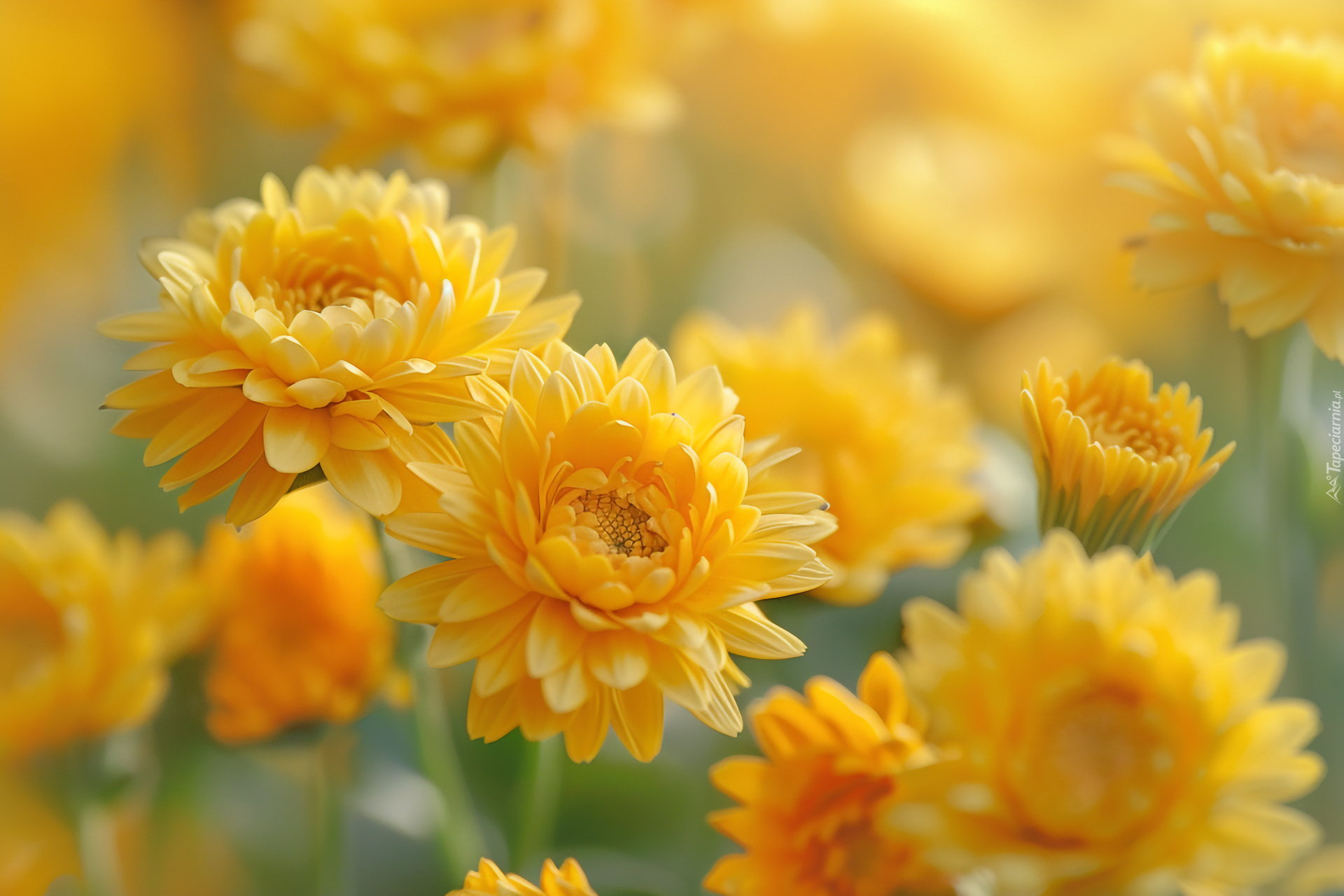 Edytor tapety: Rozwinięte żółte kwiaty na rozmytym tle