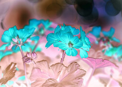 Edytor tapety: Kwitnące czerwone pelargonie i listki