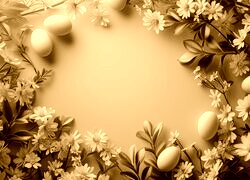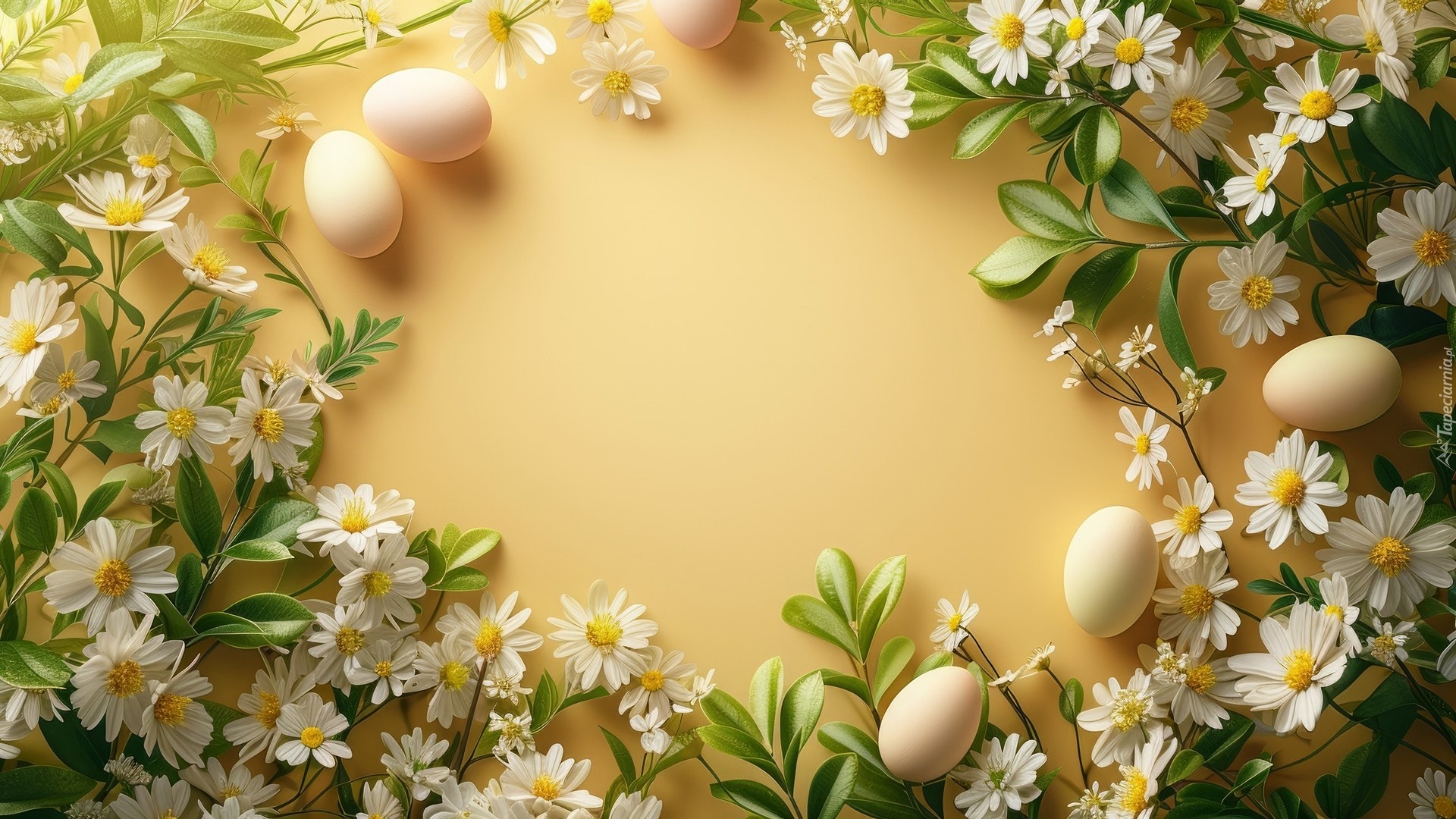 Edytor tapety: Jajka i białe drobne kwiaty na żółtym tle