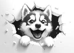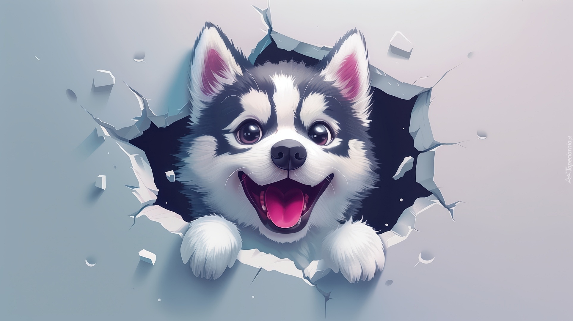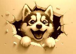 Edytor tapety: Radosny szczeniak siberian husky w grafice