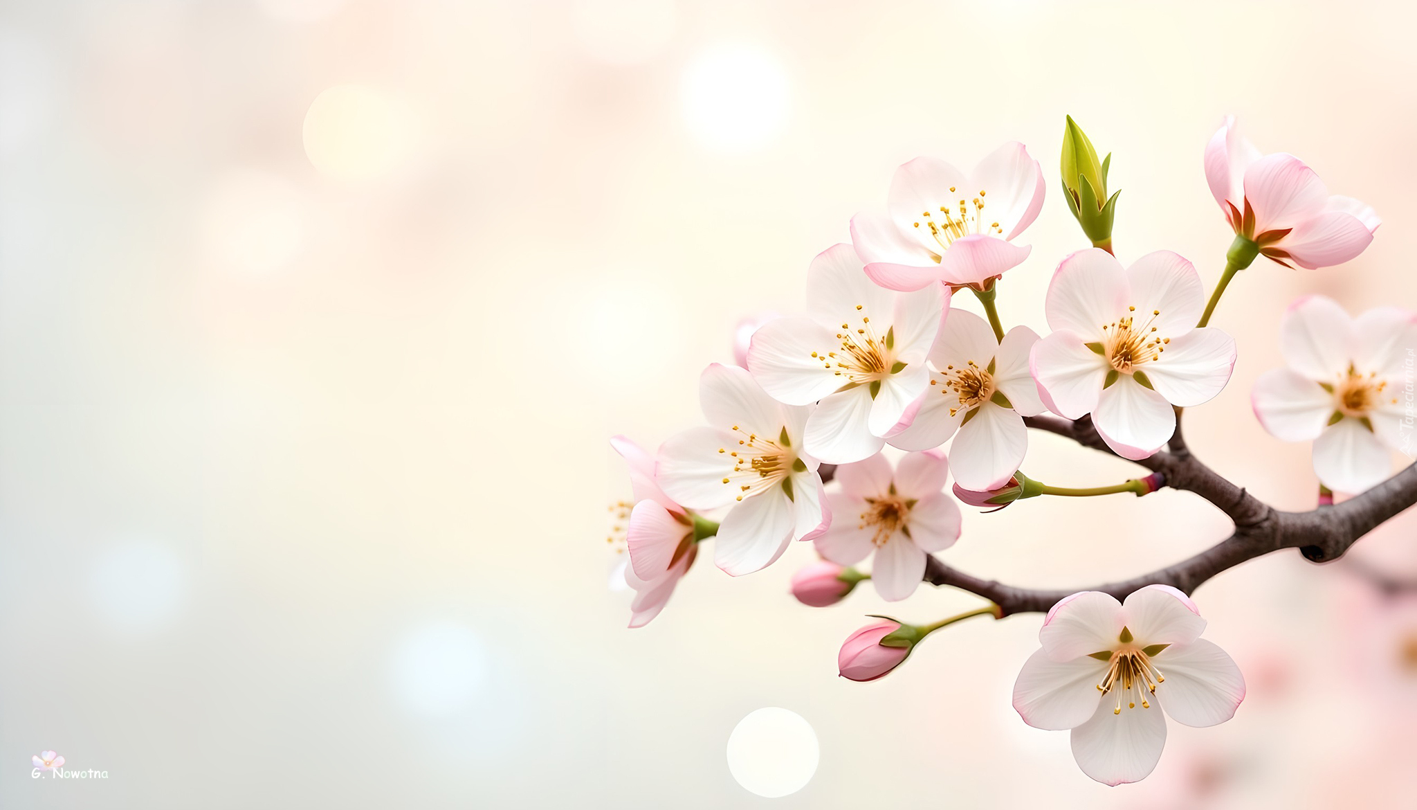 Edytor tapety: Gałązka drzewa owocowego z kwitnącymi kwiatami
