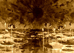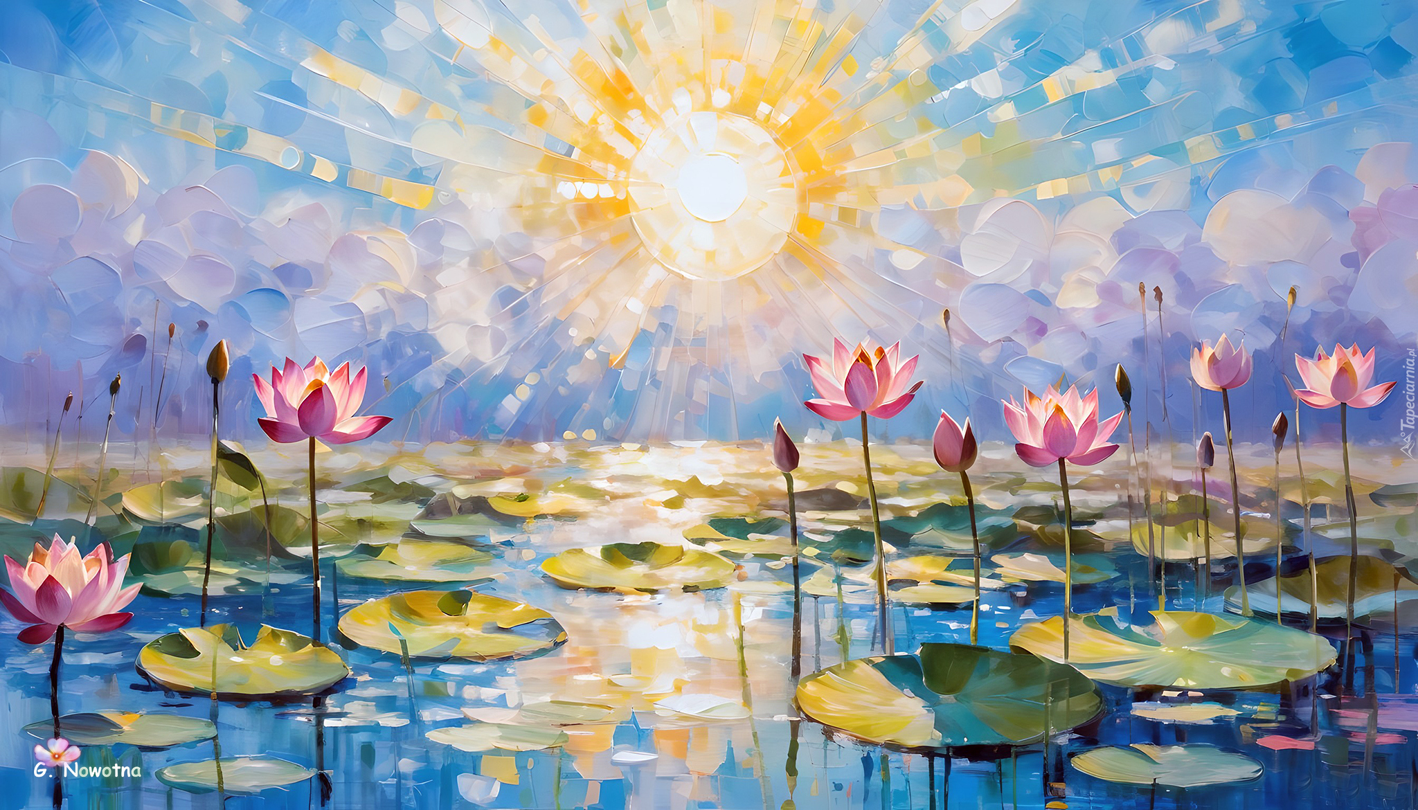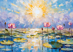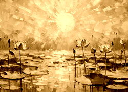 Edytor tapety: Słońce oświetlające lotosy w wodzie