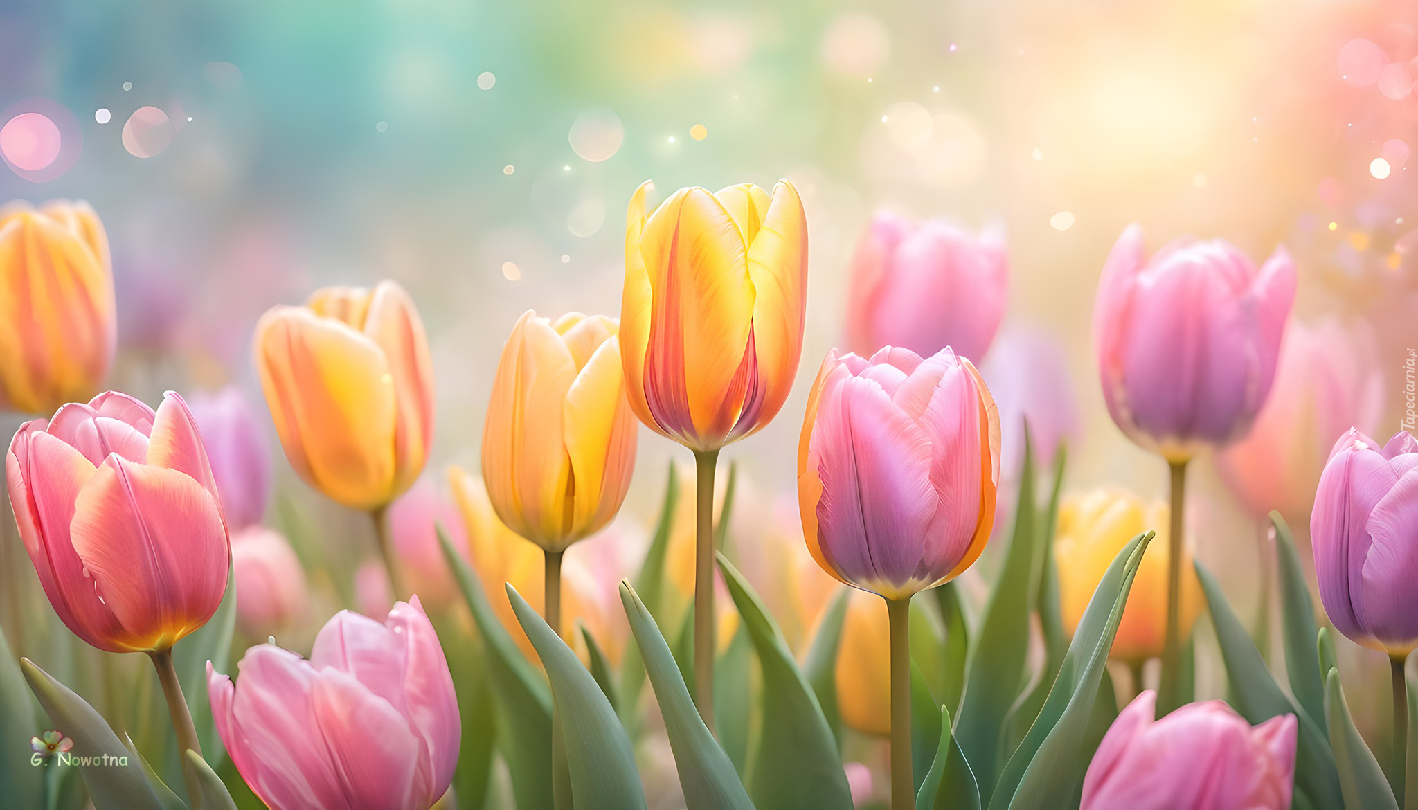 Edytor tapety: Żółte i różowe tulipany w grafice