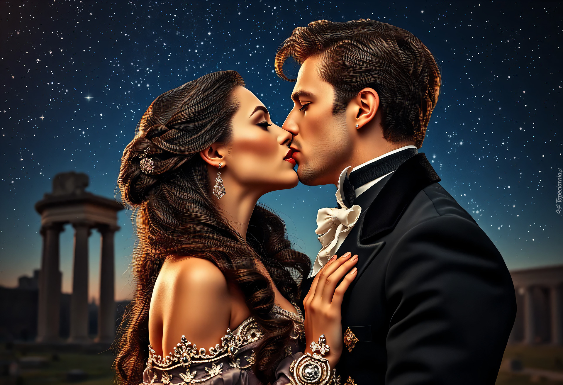 Edytor tapety: Pocałunek zakochanych pod rozgwieżdżonym niebem