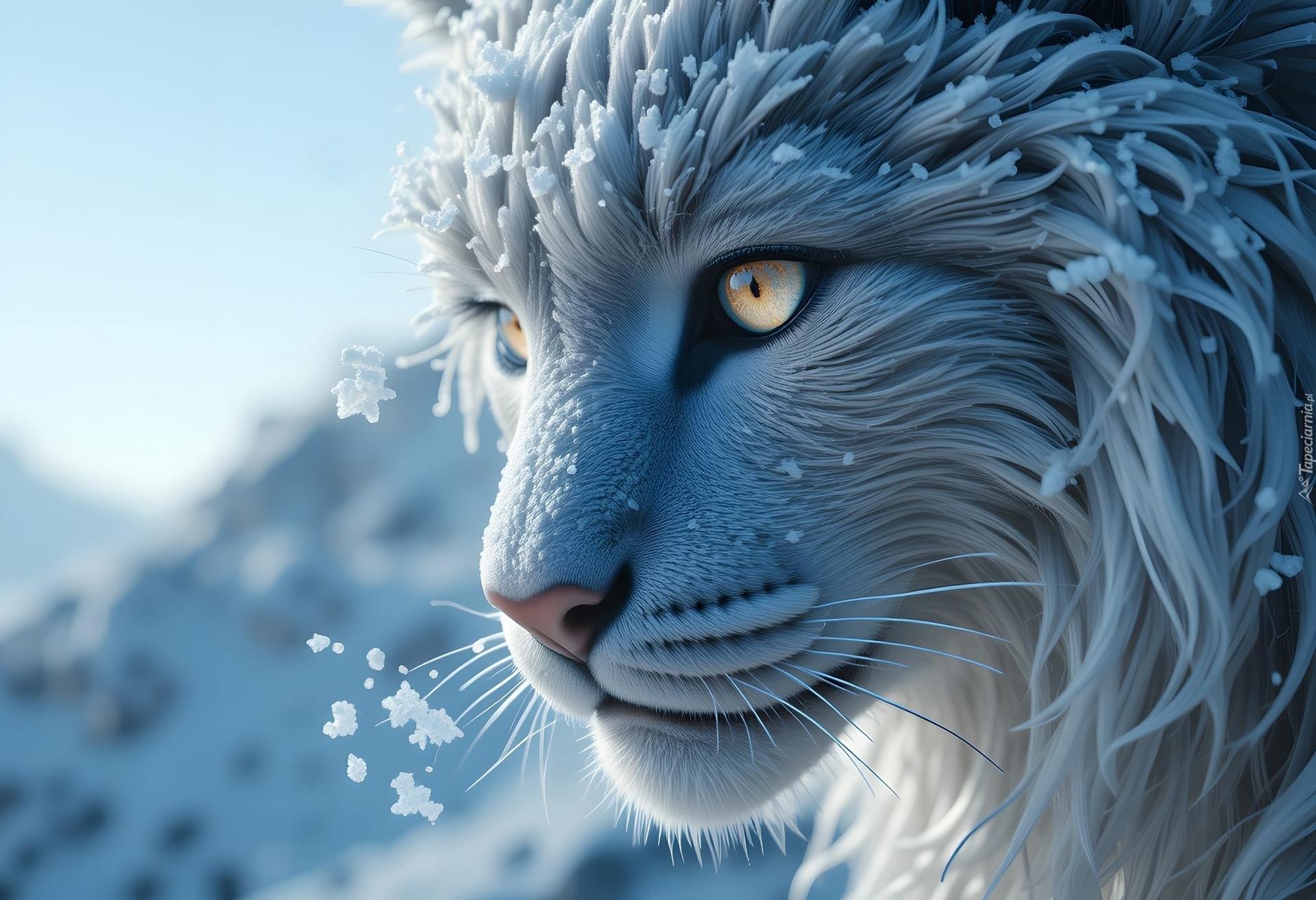 Edytor tapety: Półprofil ośnieżonej głowy dzikiego kota