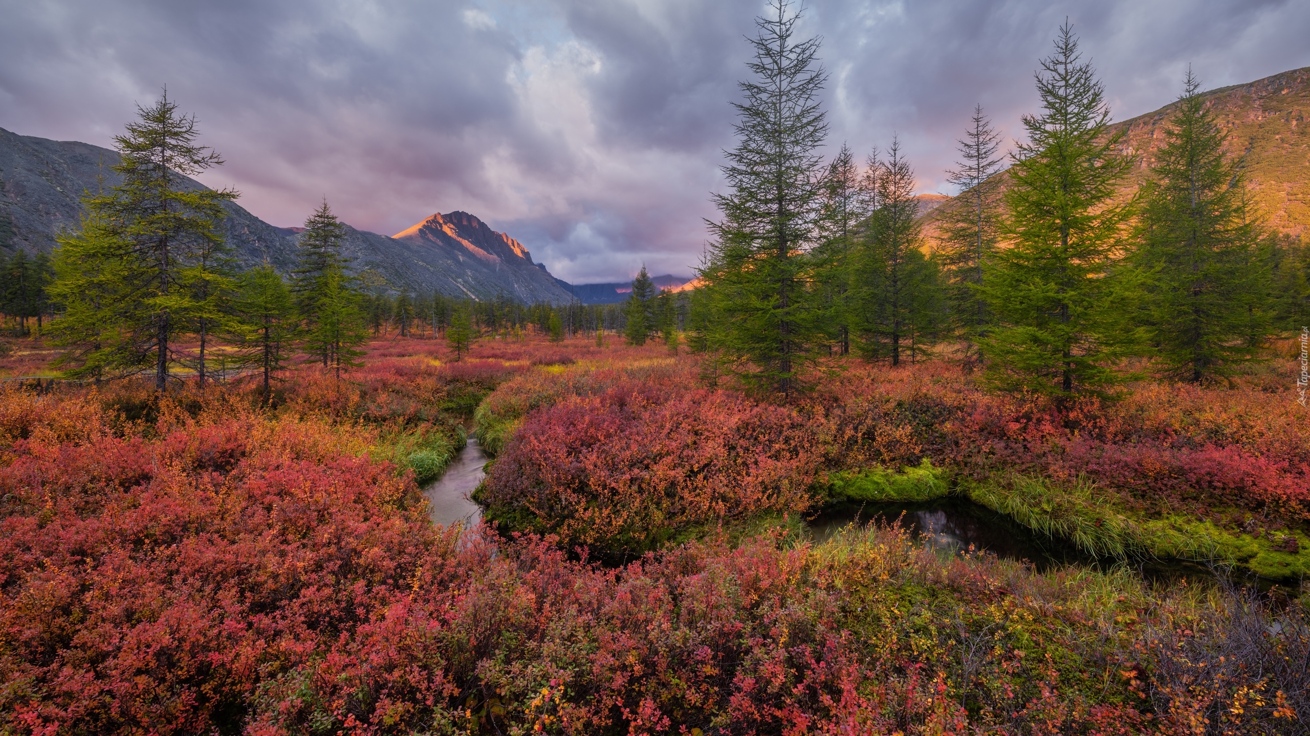 Edytor tapety: Drzewa i jesienna kolorowa roślinność na Kołymie