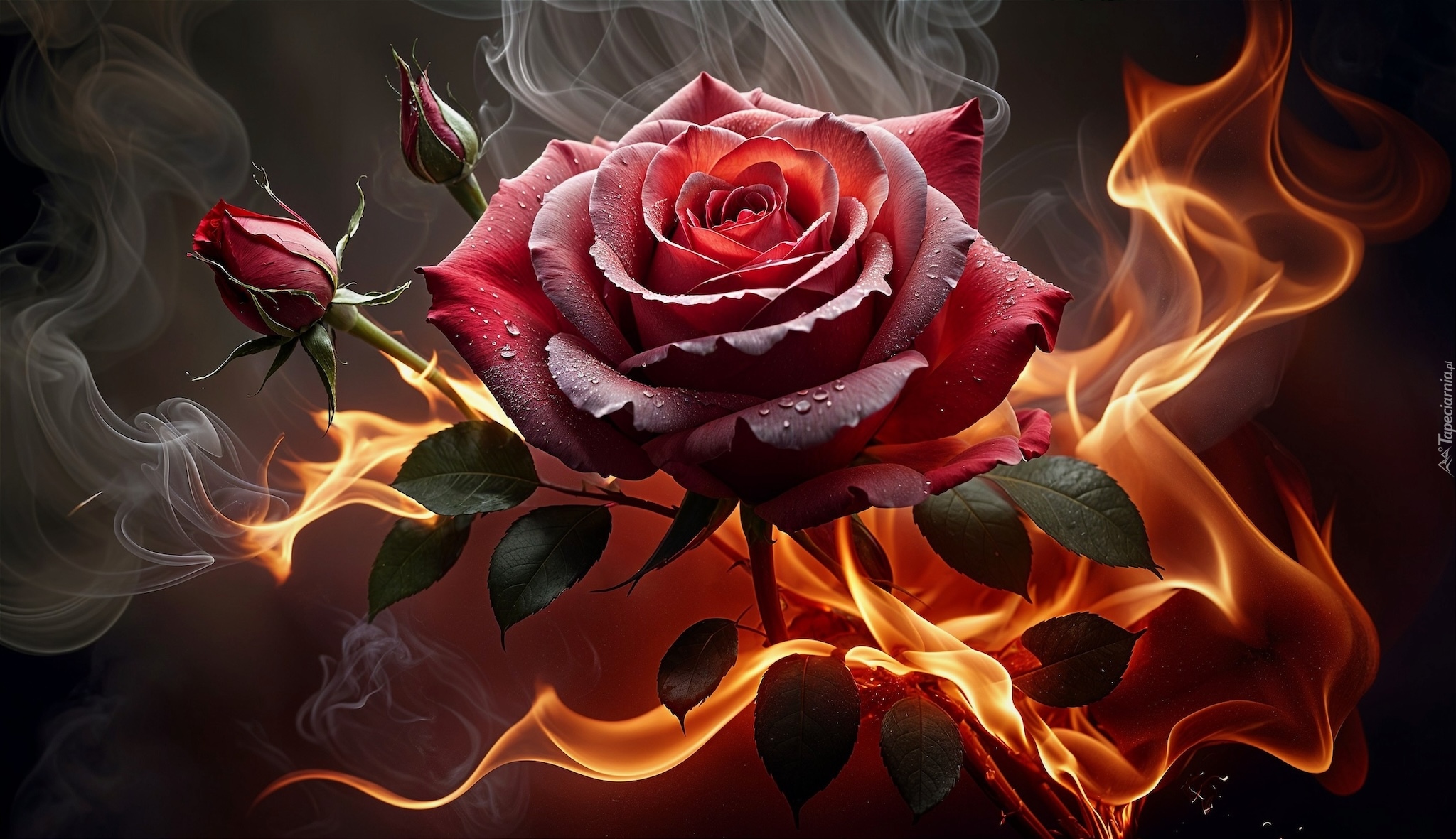 Edytor tapety: Czerwona róża w płomieniach