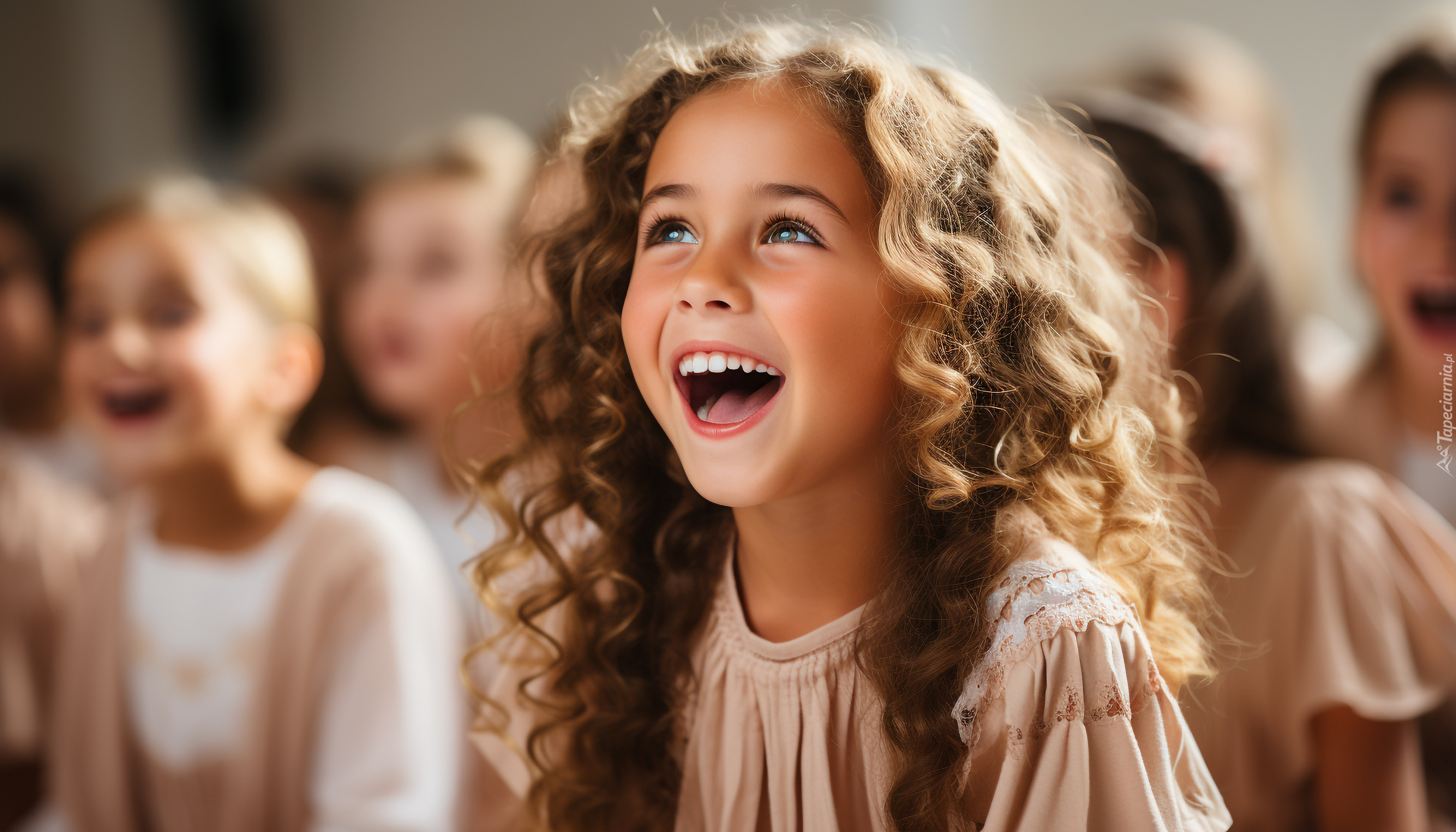 Edytor tapety: Radosna dziewczynka z długimi kręconymi włosami