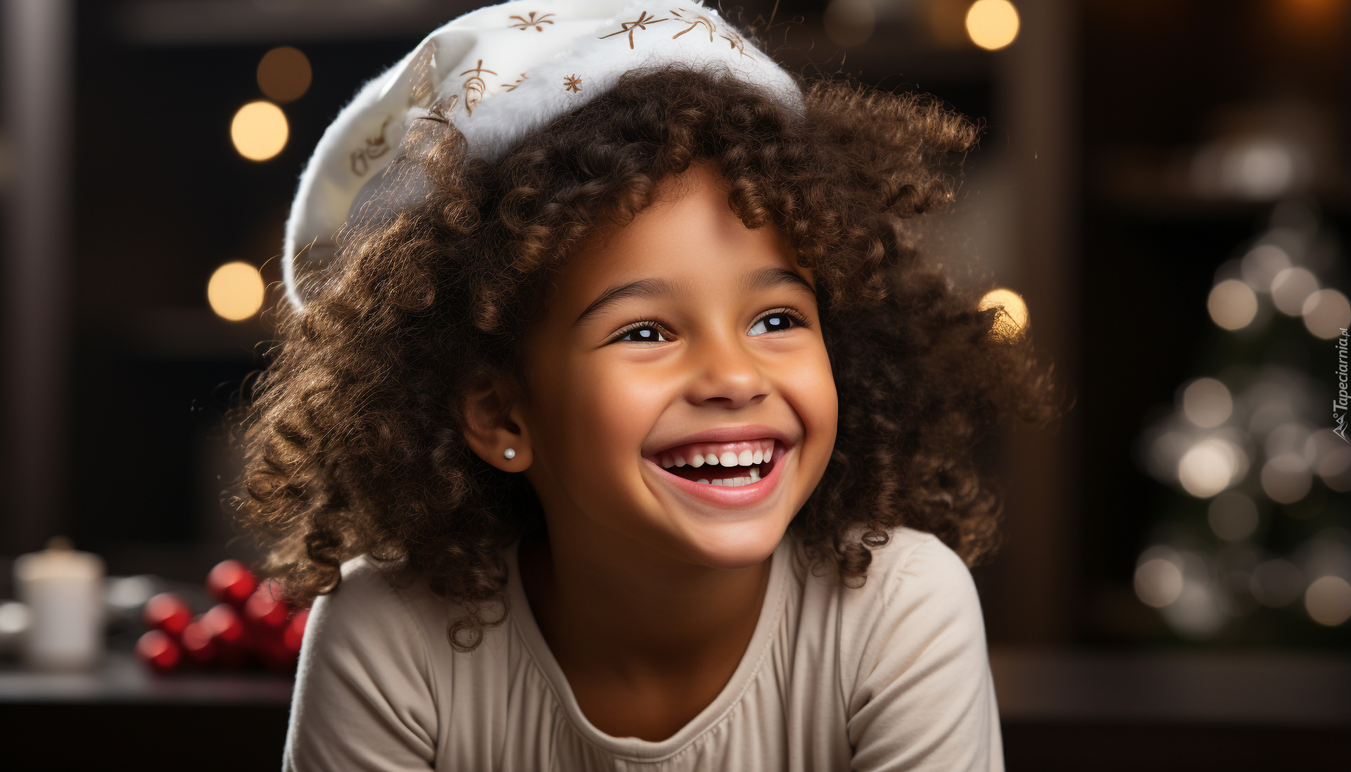 Edytor tapety: Uśmiechnięta dziewczynka z kręconymi włosami i w czapce