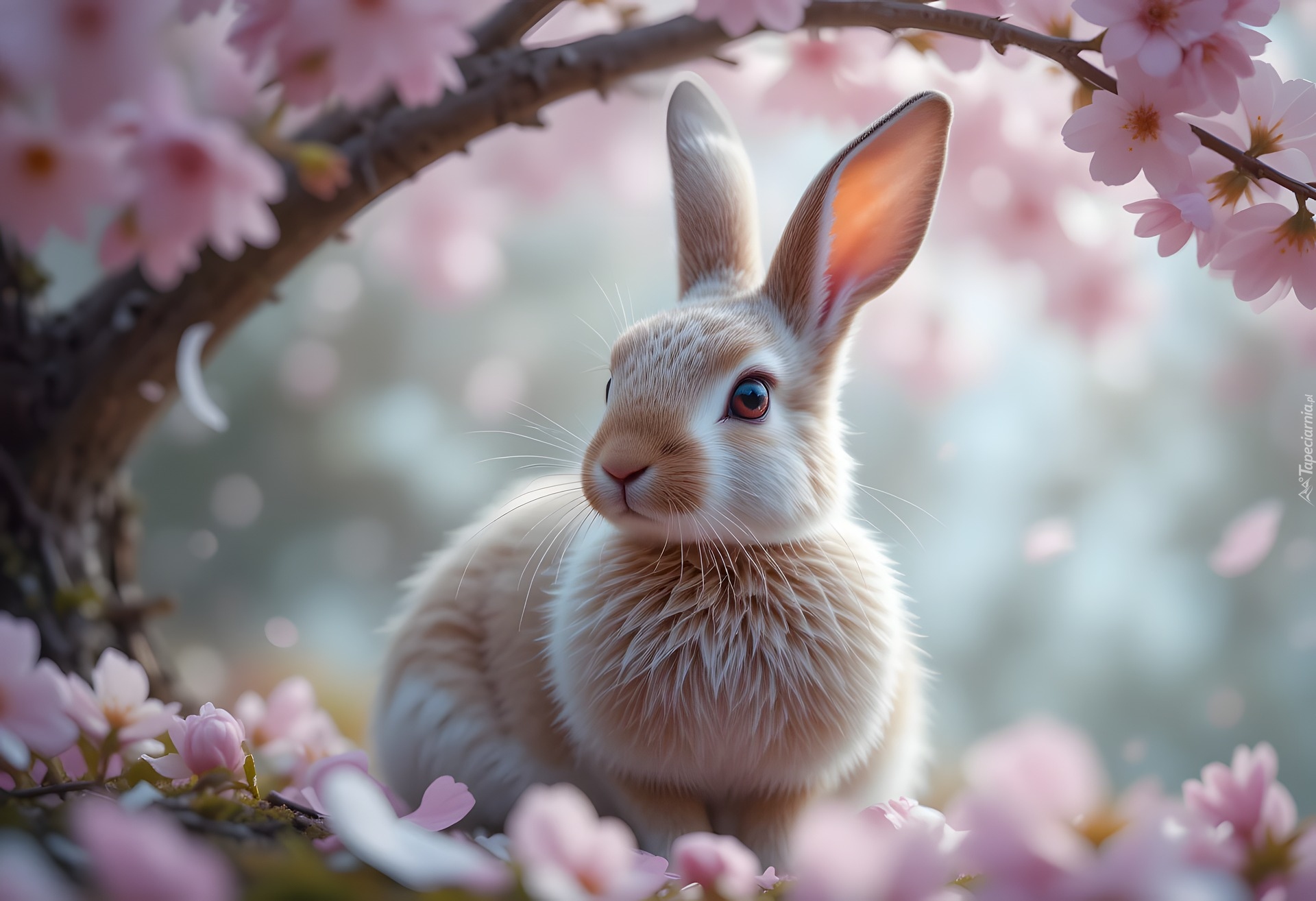 Edytor tapety: Królik pod ukwieconą gałązką