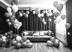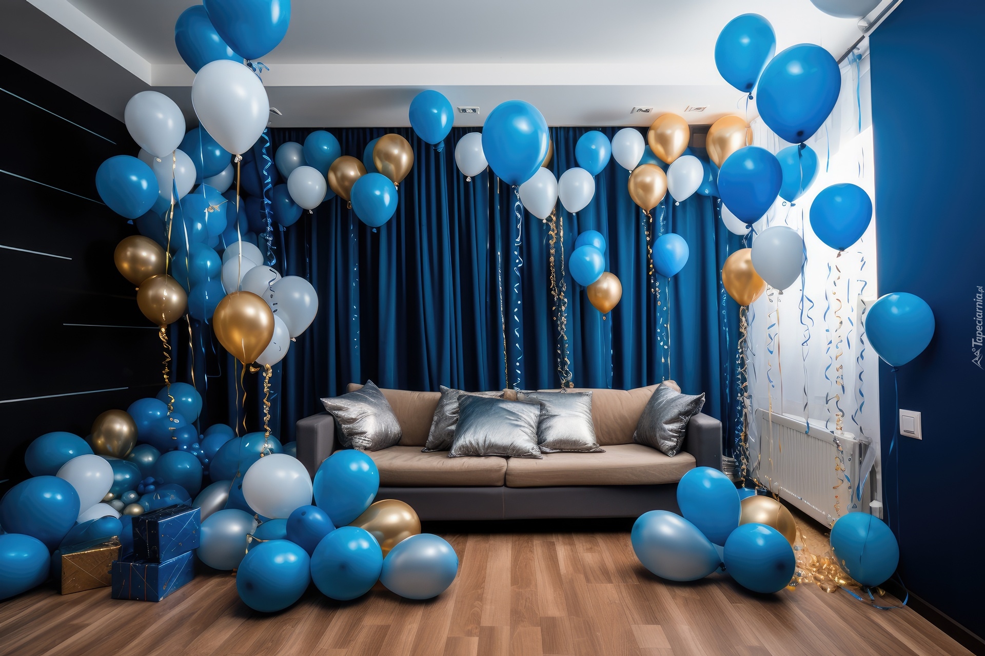 Edytor tapety: Wnętrze pokoju udekorowane balonami