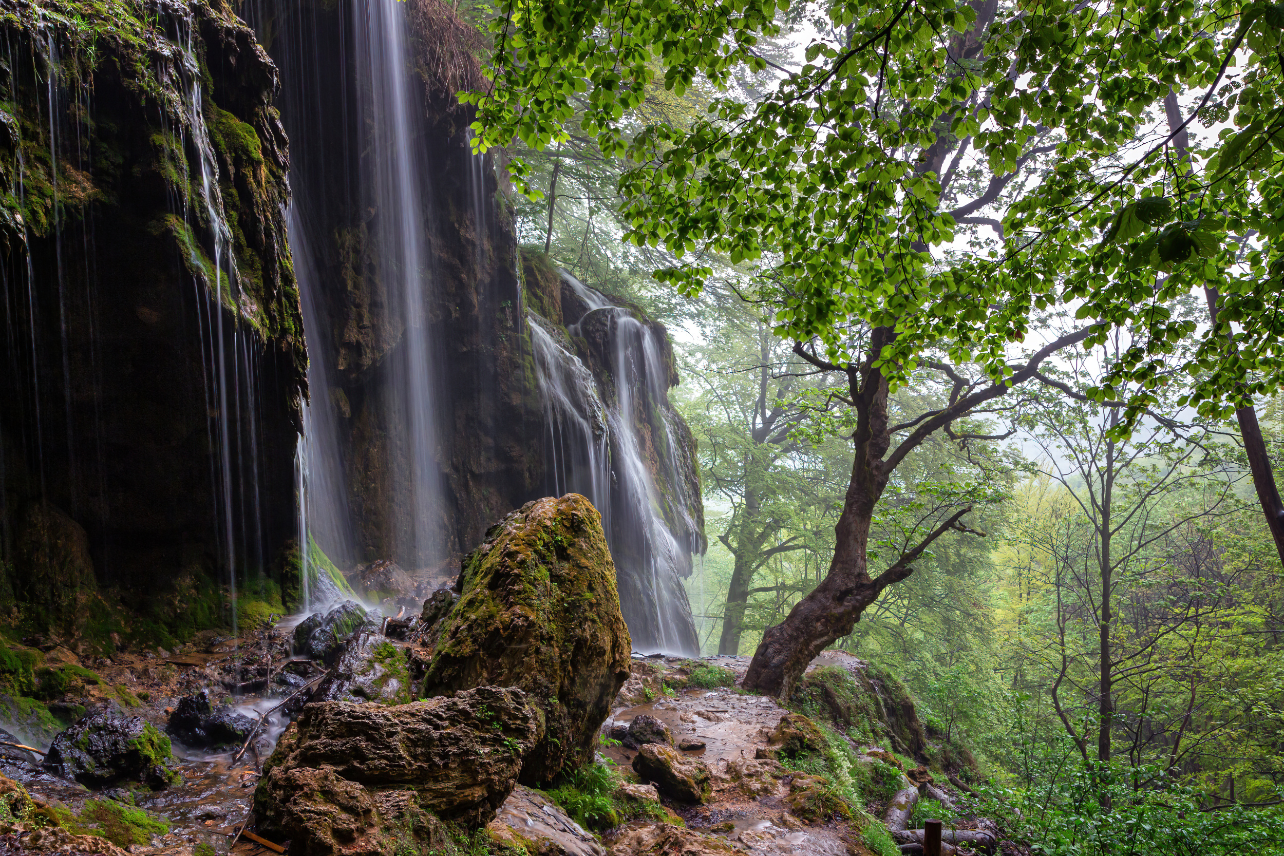 Edytor tapety: Drzewo i kamienie przy wodospadzie na skałach