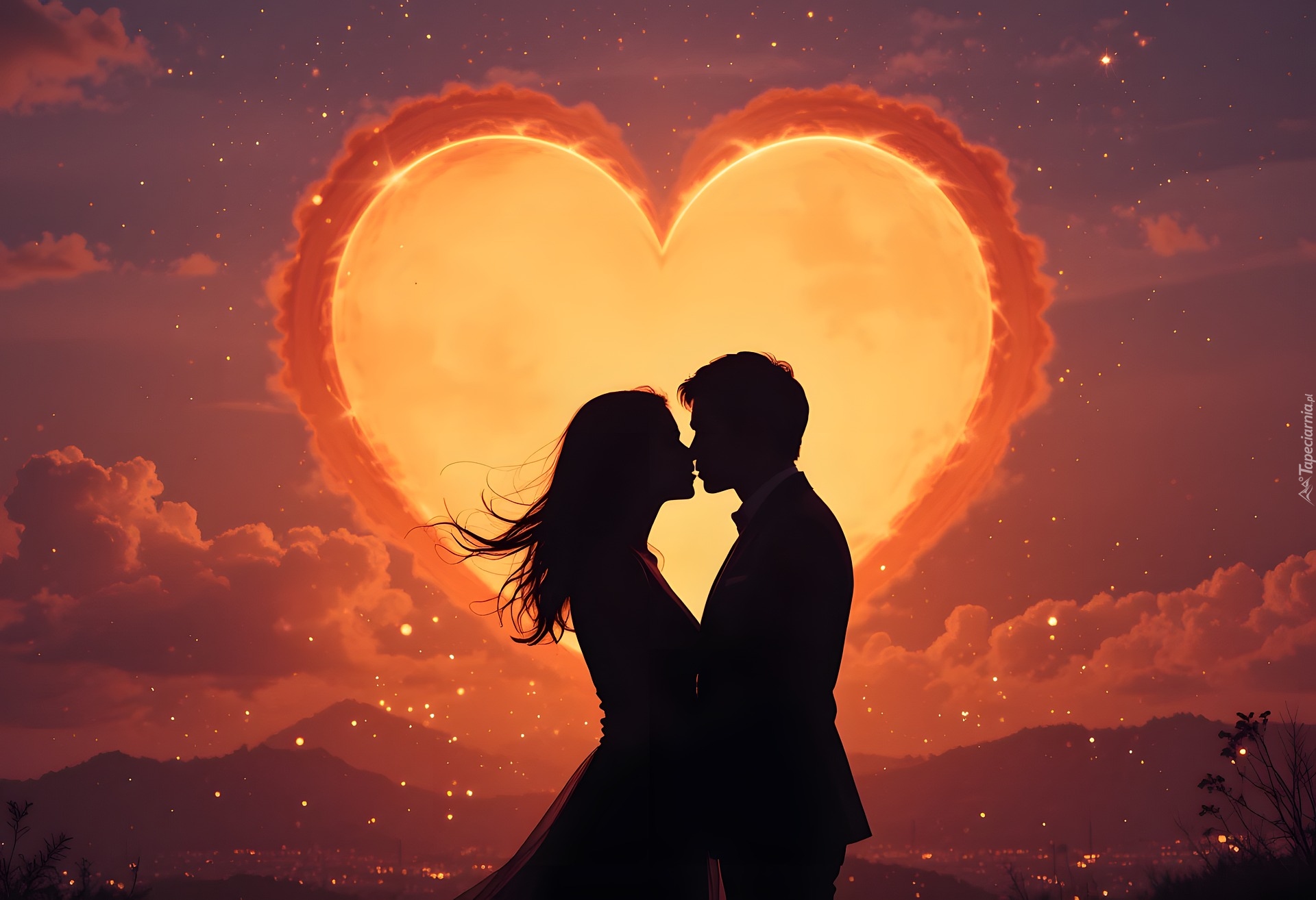Edytor tapety: Zakochani na tle serca w 2D