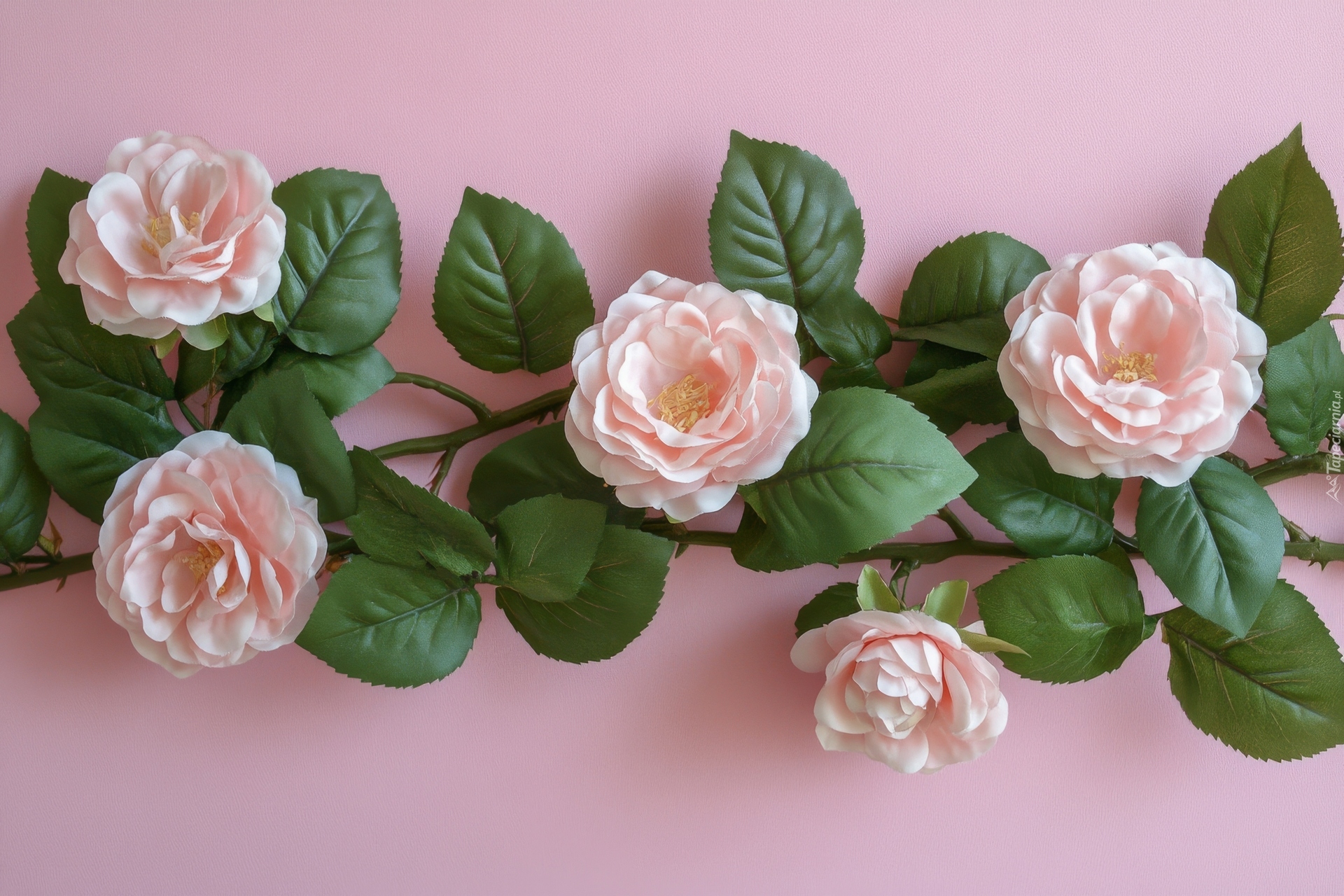 Edytor tapety: Jasnoróżowe róże i listki na gałązkach