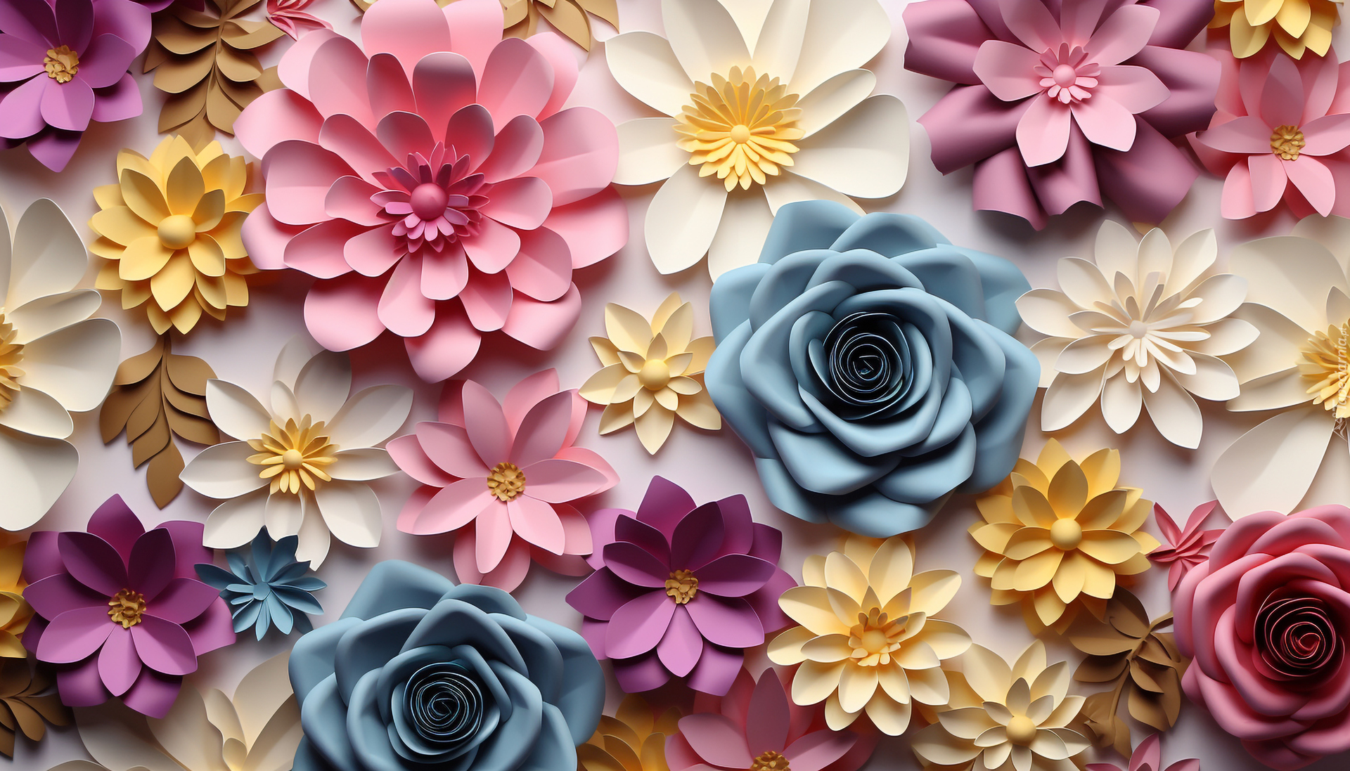 Edytor tapety: Grafika z kolorowymi papierowymi kwiatami