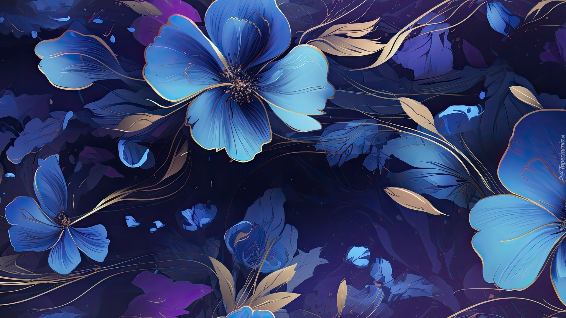 Edytor tapety: Niebiesko-złote kwiaty w grafice