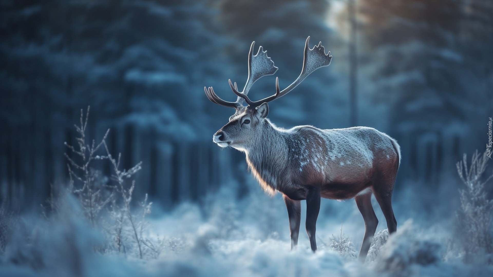 Edytor tapety: Łoś na śniegu w lesie