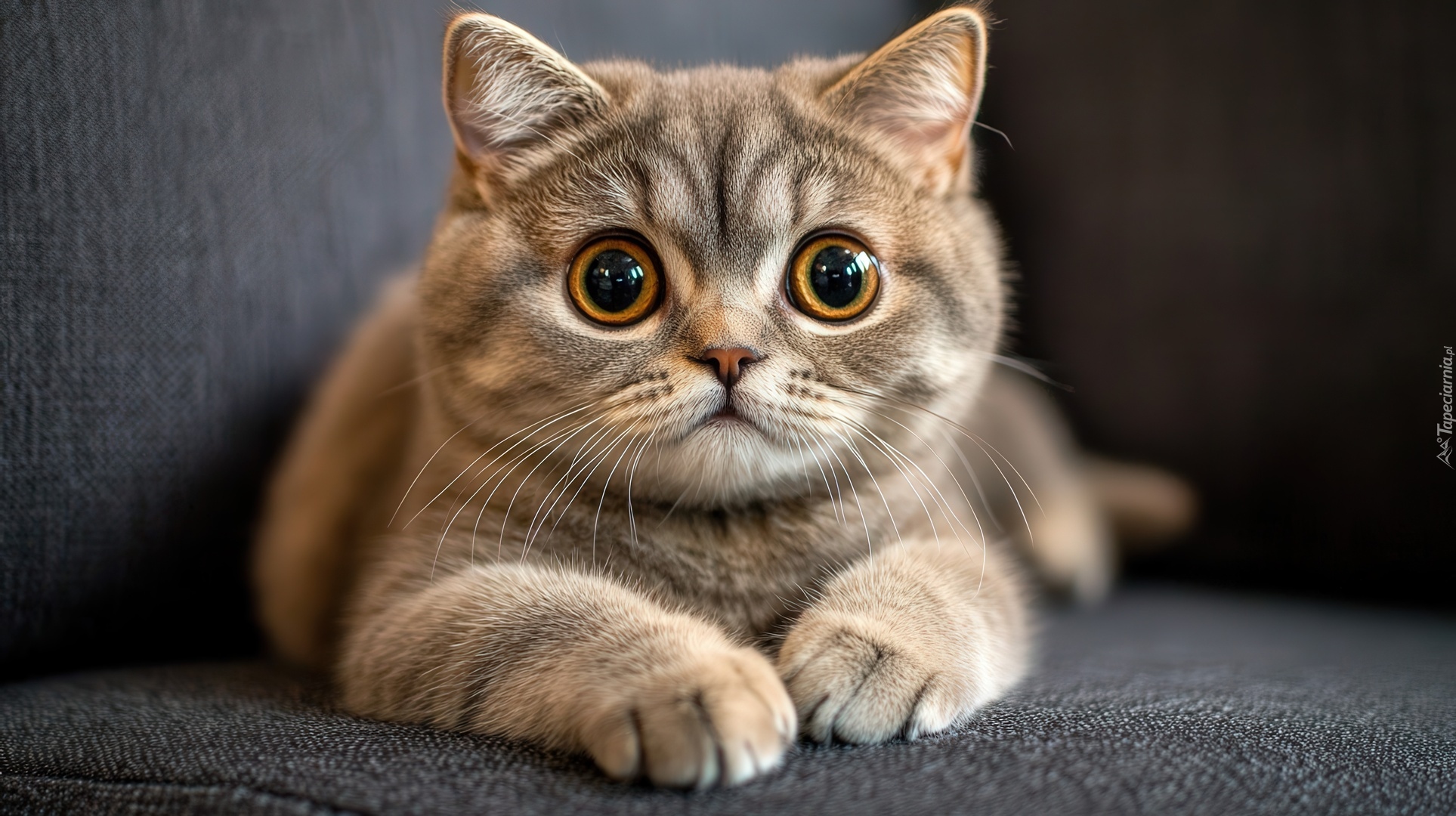 Edytor tapety: Kot z dużymi brązowymi oczami leżący na kanapie