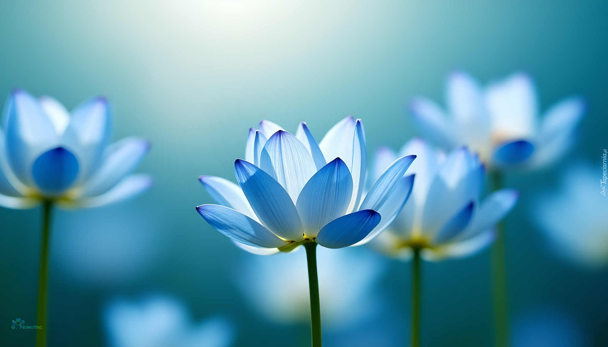 Edytor tapety: Rozświetlone niebieskie kwiaty w grafice