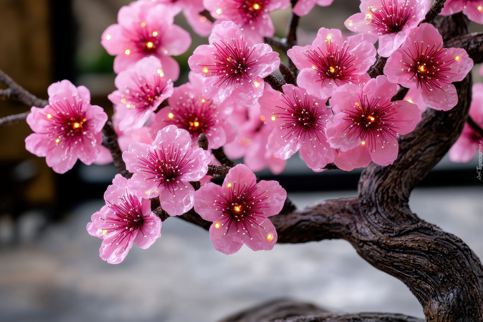Edytor tapety: Gałązki z różowymi kwiatami w zbliżeniu