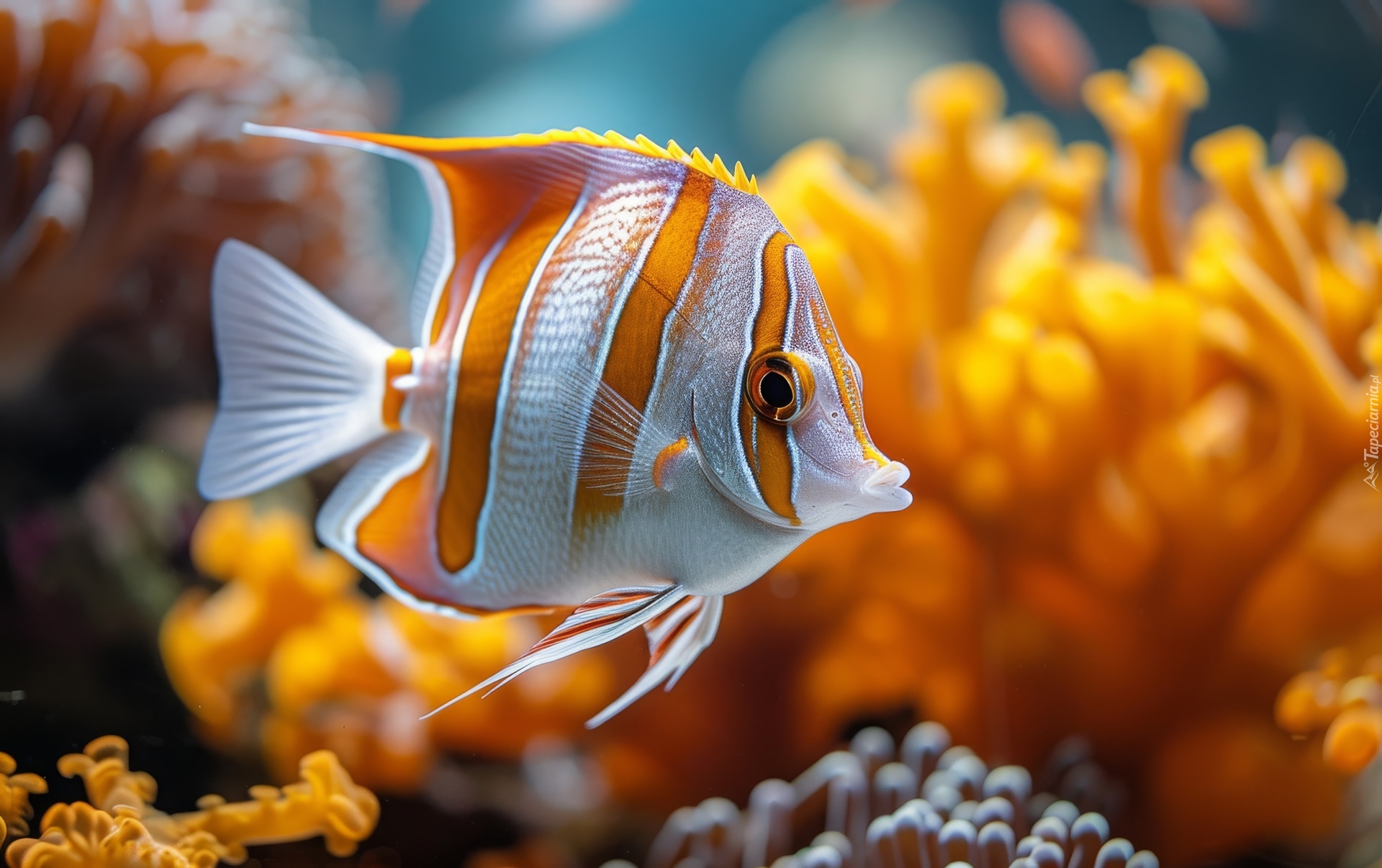 Edytor tapety: Żółto-biała ryba wśród koralowców