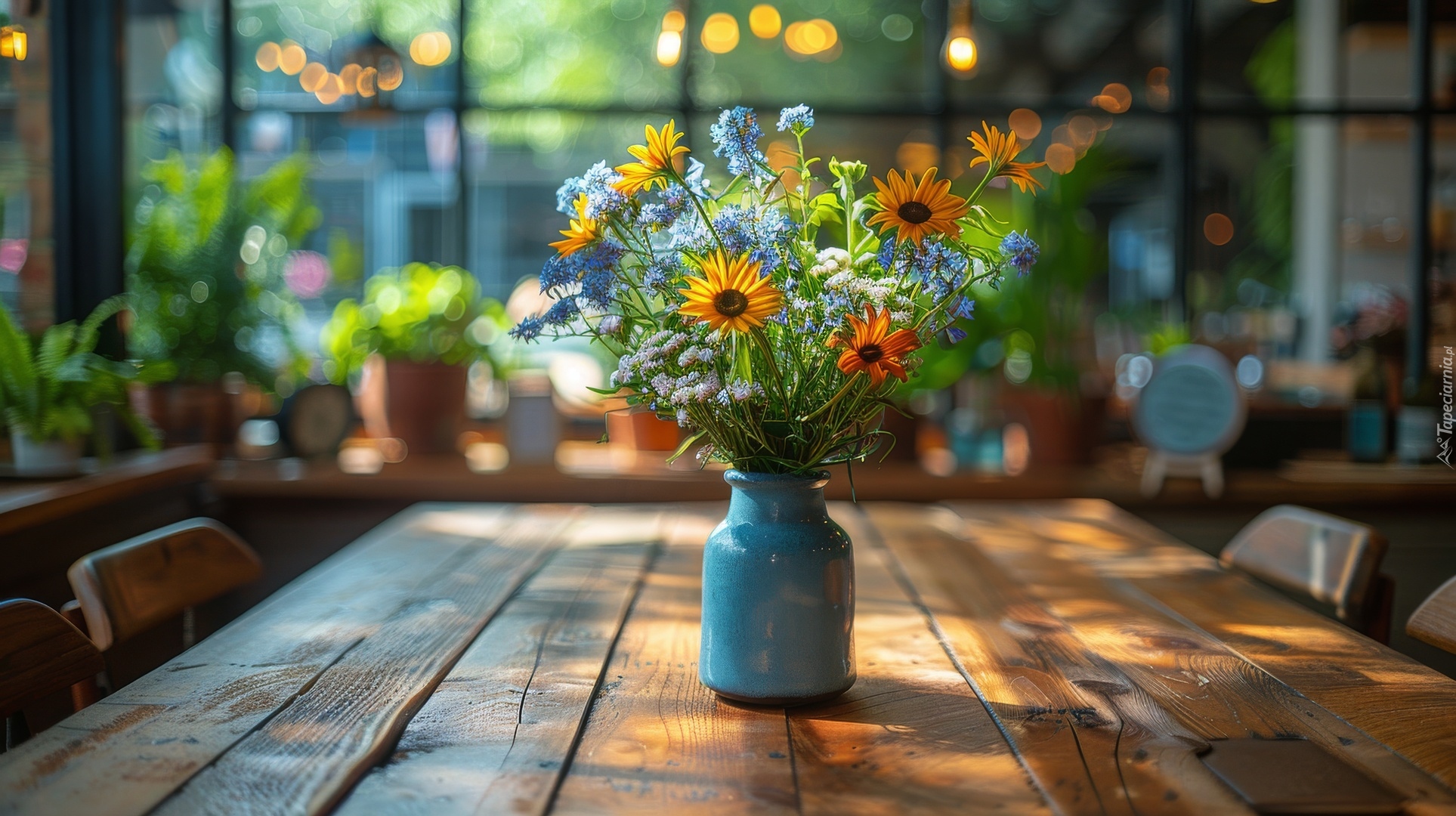 Edytor tapety: Bukiet kolorowych kwiatów na stole