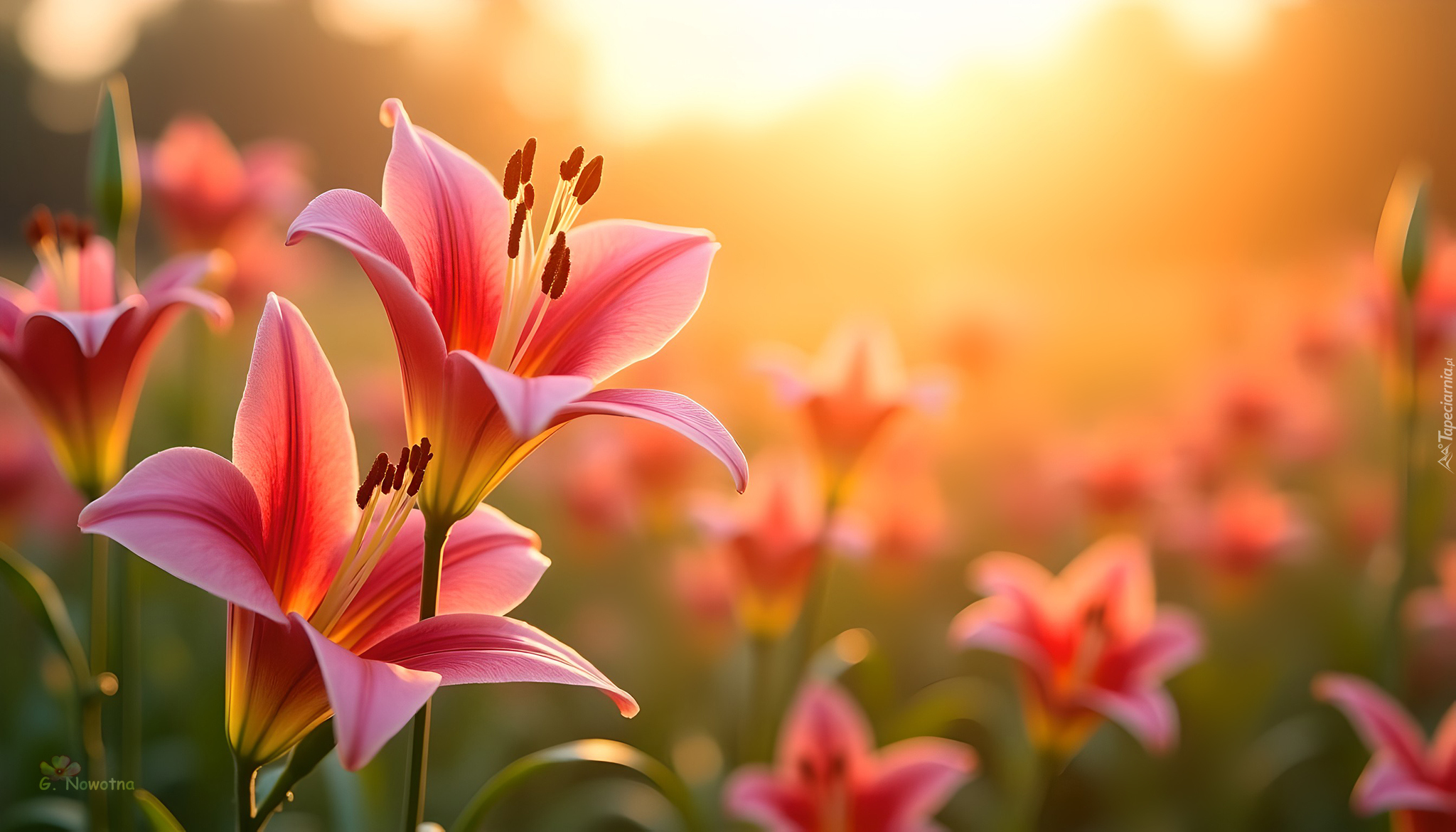 Edytor tapety: Rozświetlone różowe lilie w grafice