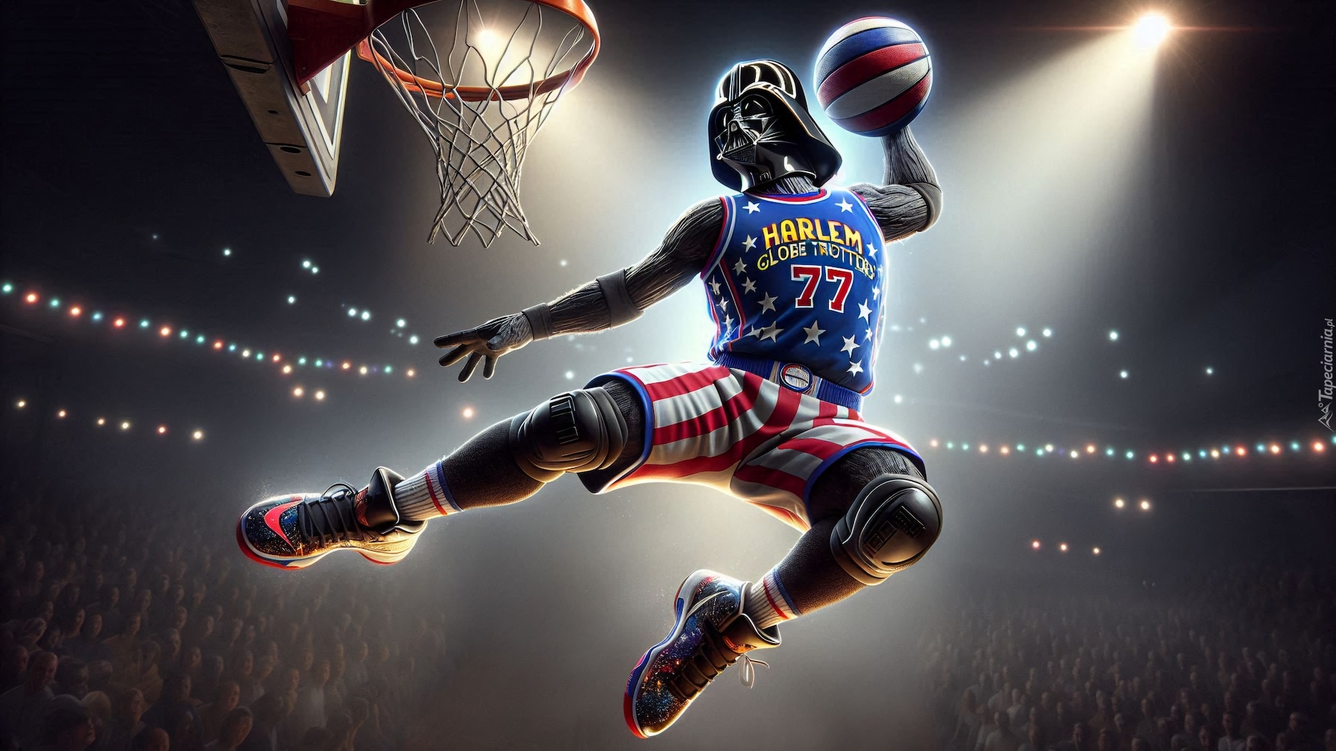 Edytor tapety: Fikcyjna postać Darth Vader jako koszykarz w grafice