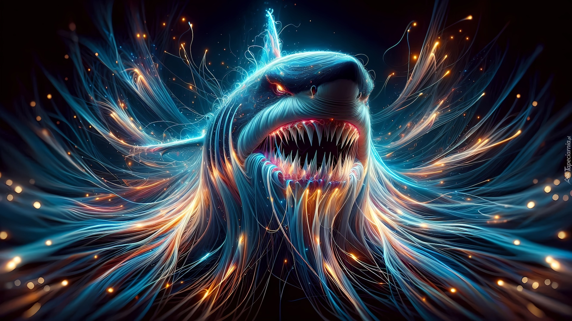 Edytor tapety: Rekin z otwartą szczęką w kolorowej grafice