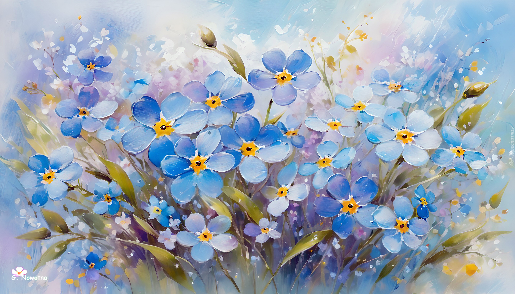 Edytor tapety: Grafika z niebieskimi niezapominajkami i listkami