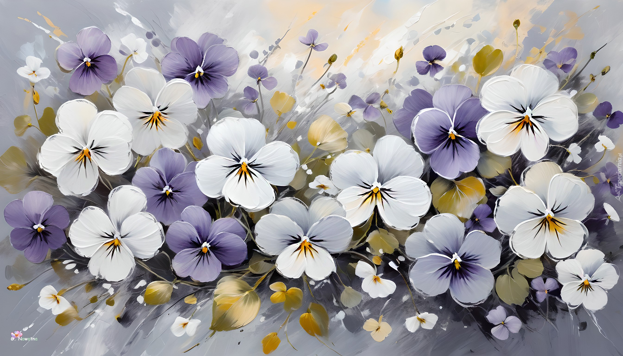 Edytor tapety: Białe i fioletowe bratki w grafice