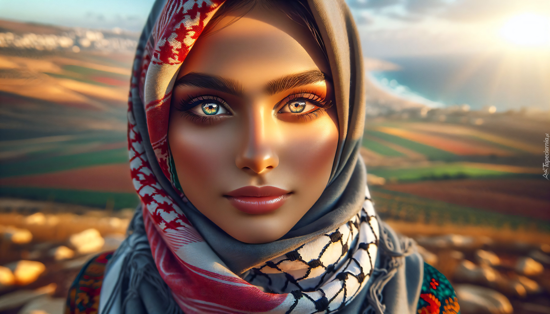 Edytor tapety: Twarz kobiety w chuście na głowie w grafice