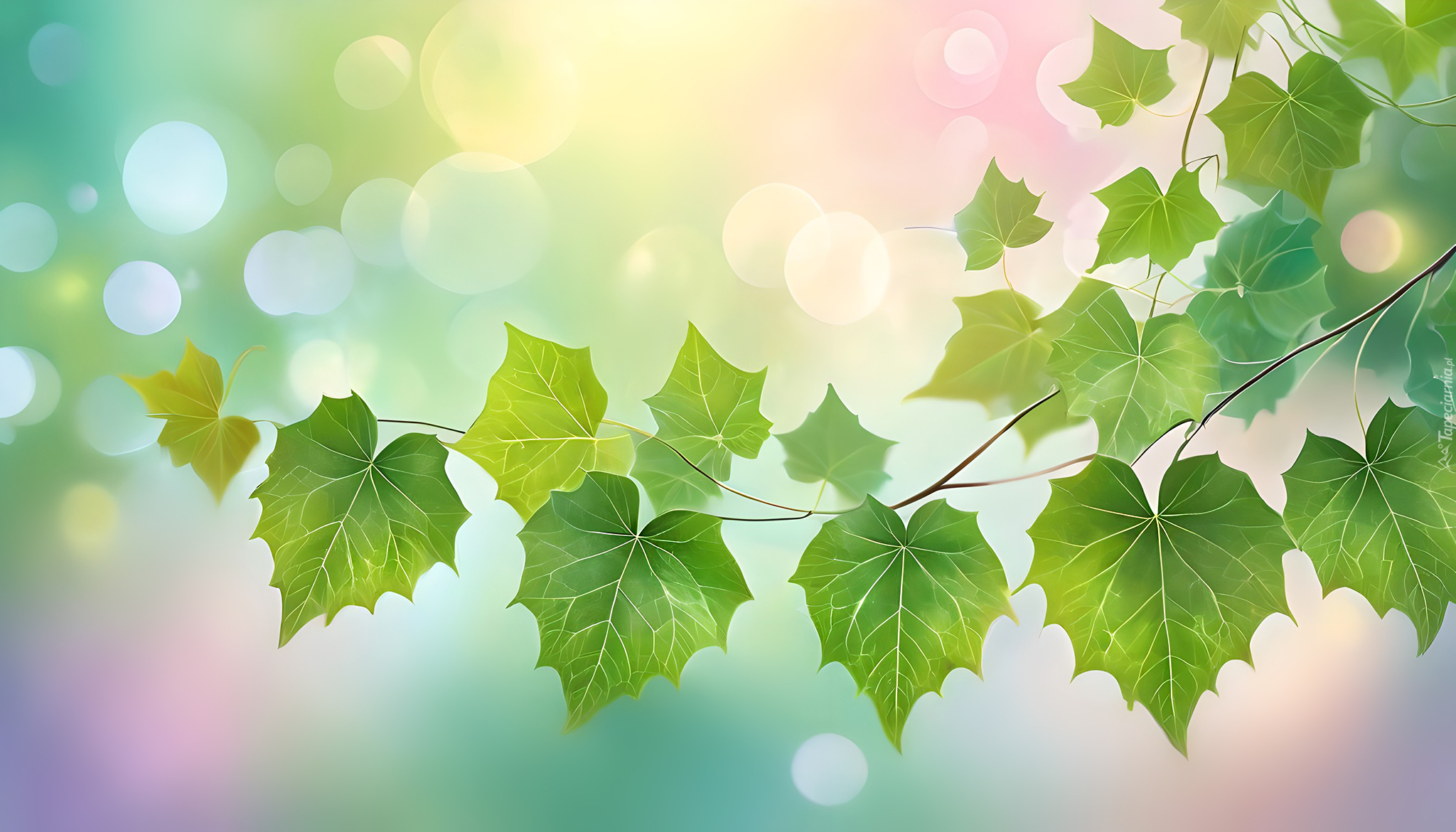 Edytor tapety: Rozświetlone zielone liście w grafice