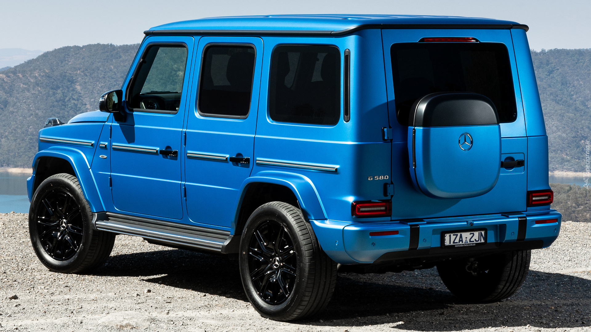Edytor tapety: Niebieski Mercedes-Benz G 580 EQ Technology