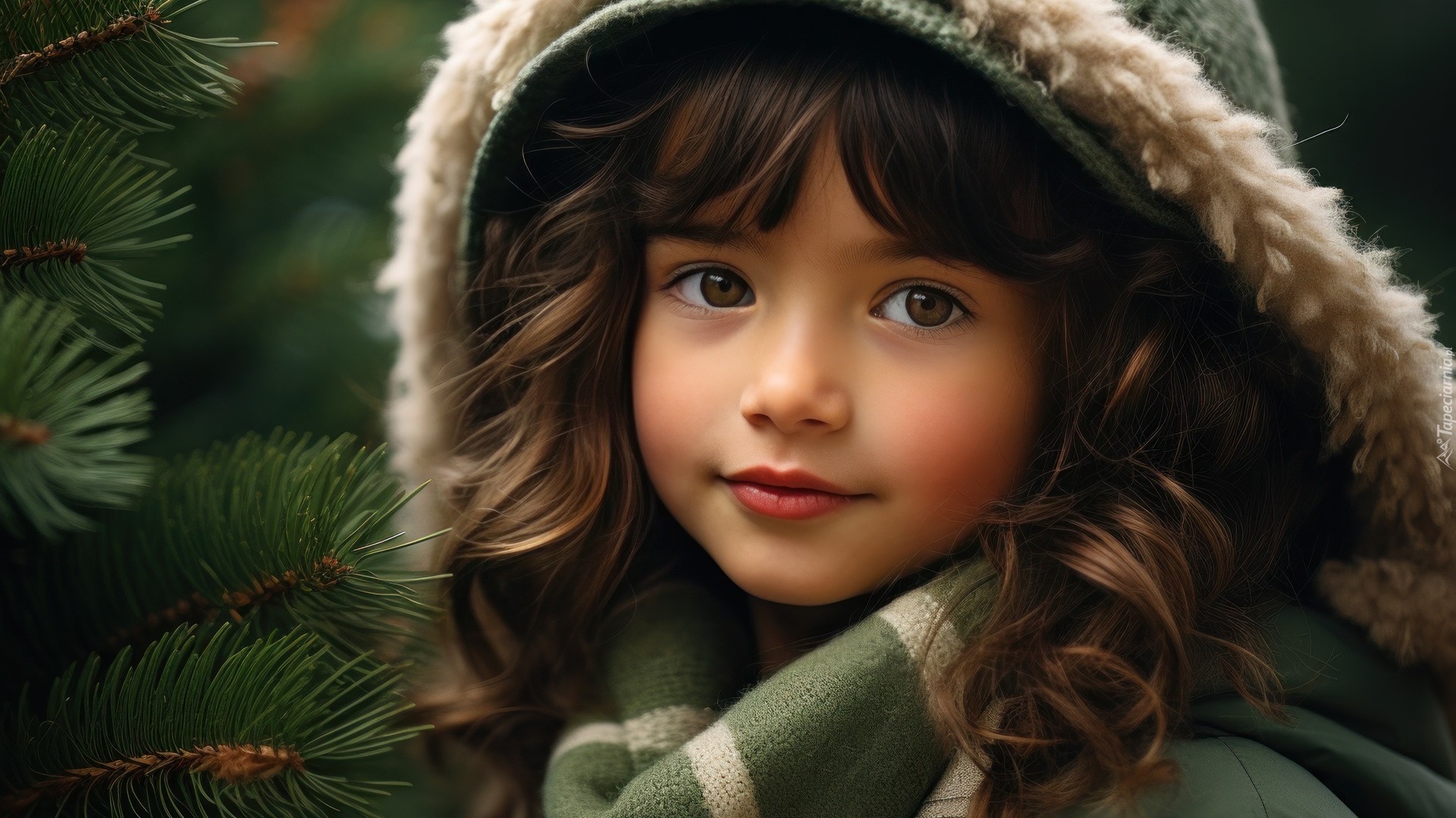 Edytor tapety: Długowłosa dziewczynka w kapturze z futerkiem i szaliku