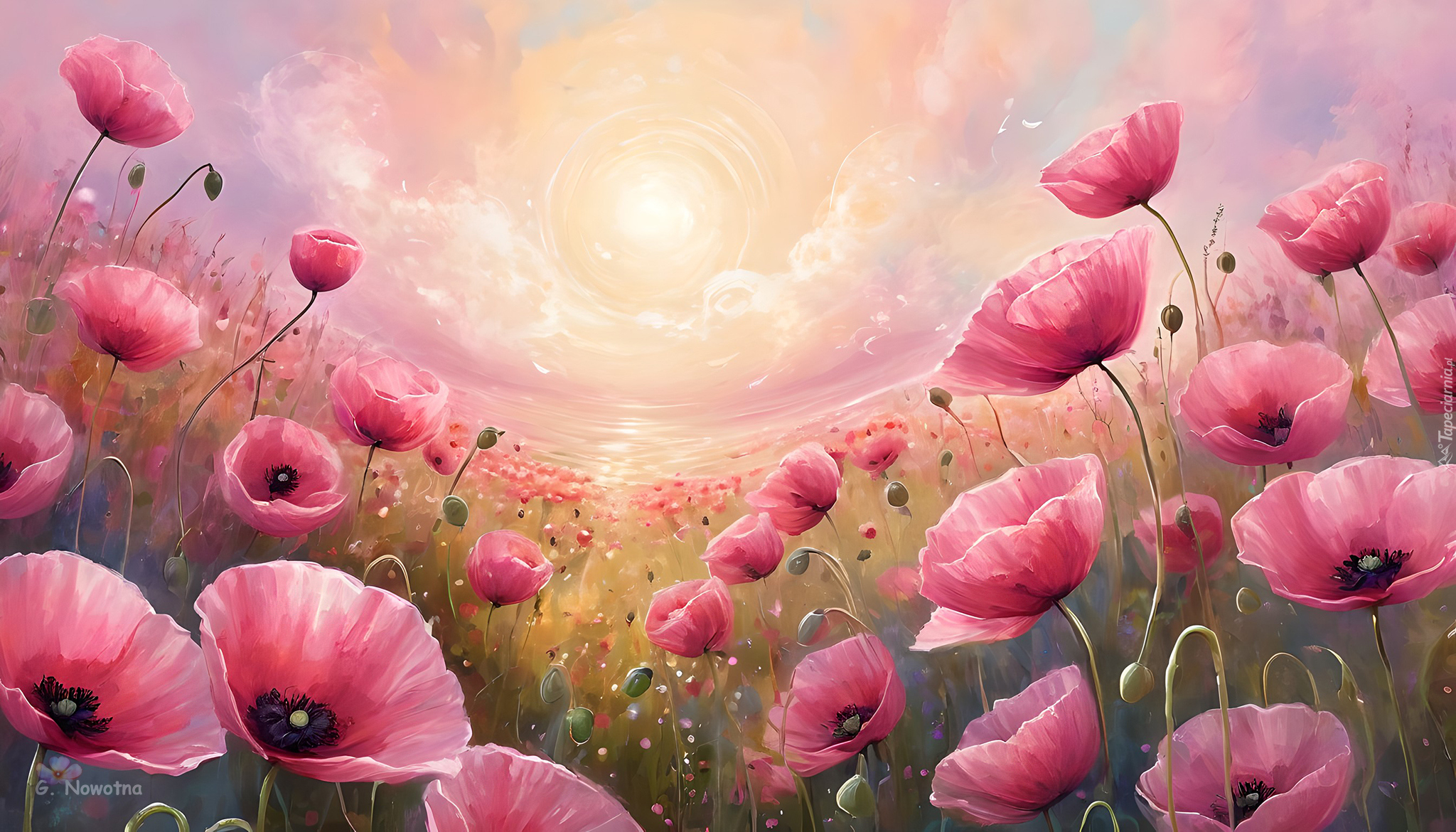 Edytor tapety: Różowe maki w słonecznym blasku