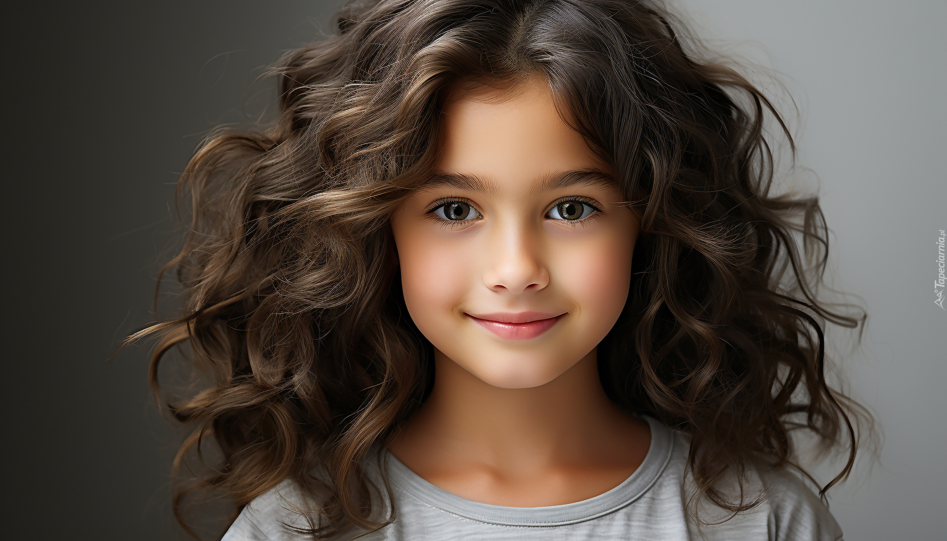 Edytor tapety: Uśmiech na twarzy dziewczynki z długimi kręconymi włosami