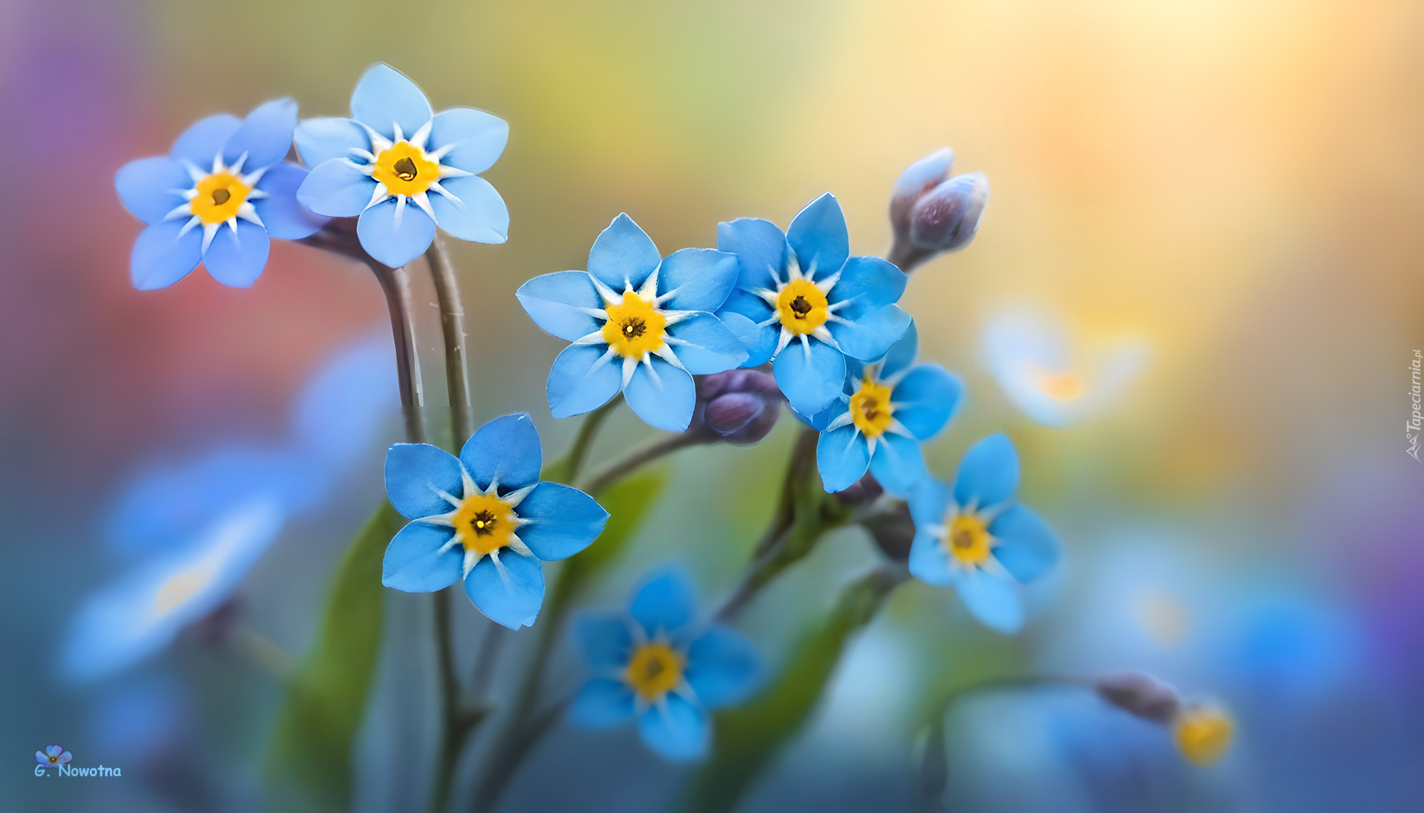 Edytor tapety: Niebieskie niezapominajki na kolorowym tle