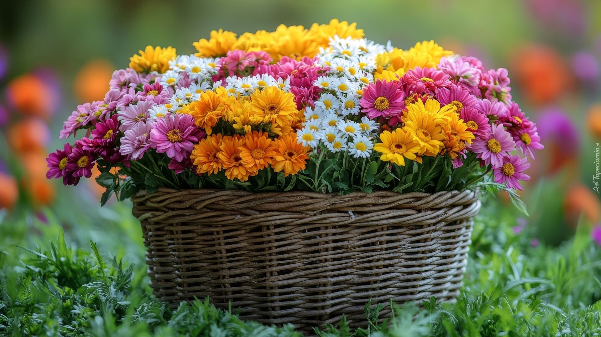 Edytor tapety: Różnokolorowe kwiaty w koszyku