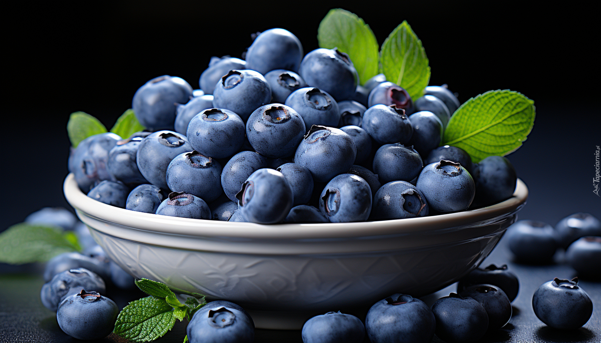 Edytor tapety: Borówki w białej miseczce