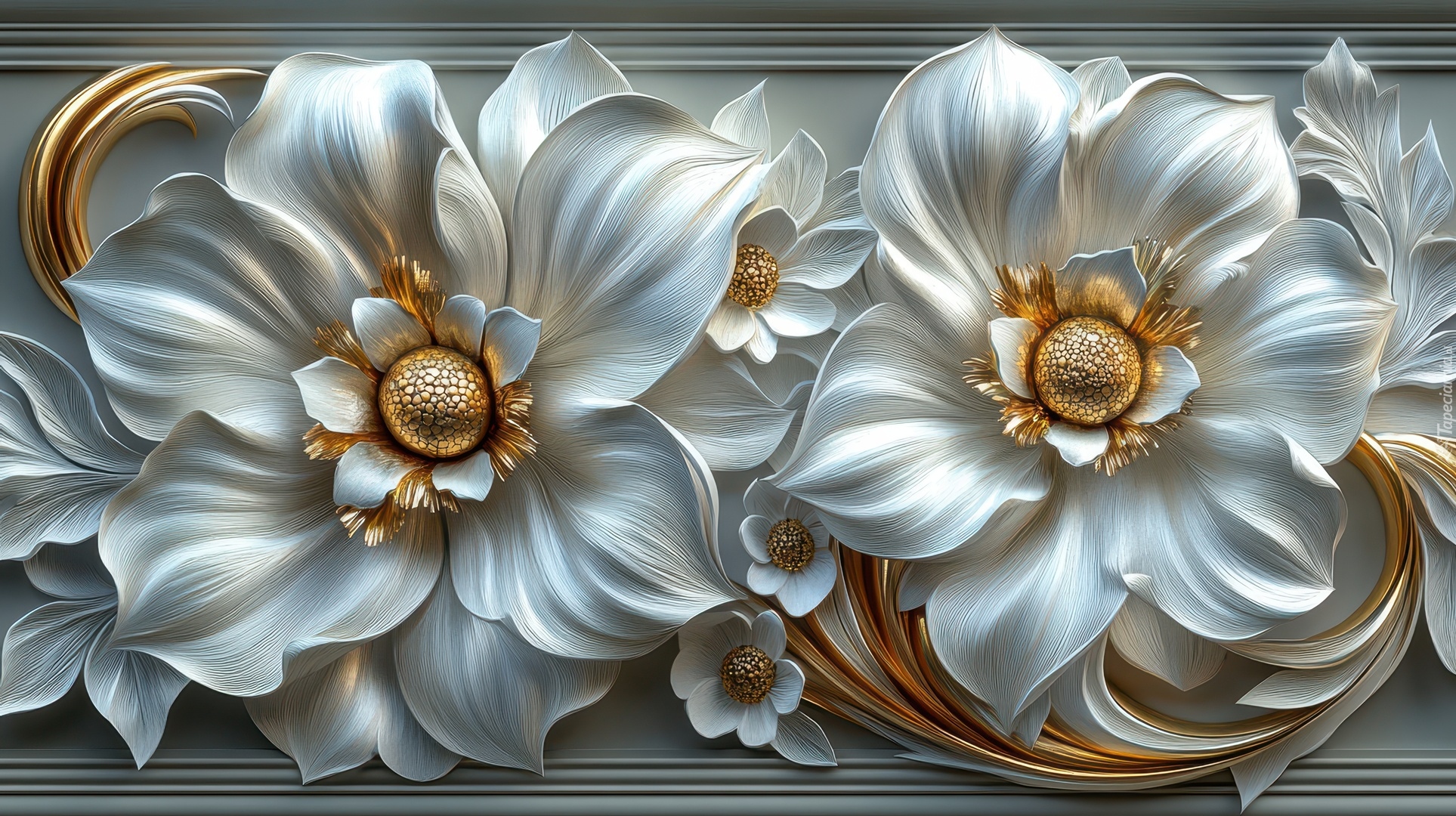 Edytor tapety: Biało-złote kwiaty w grafice