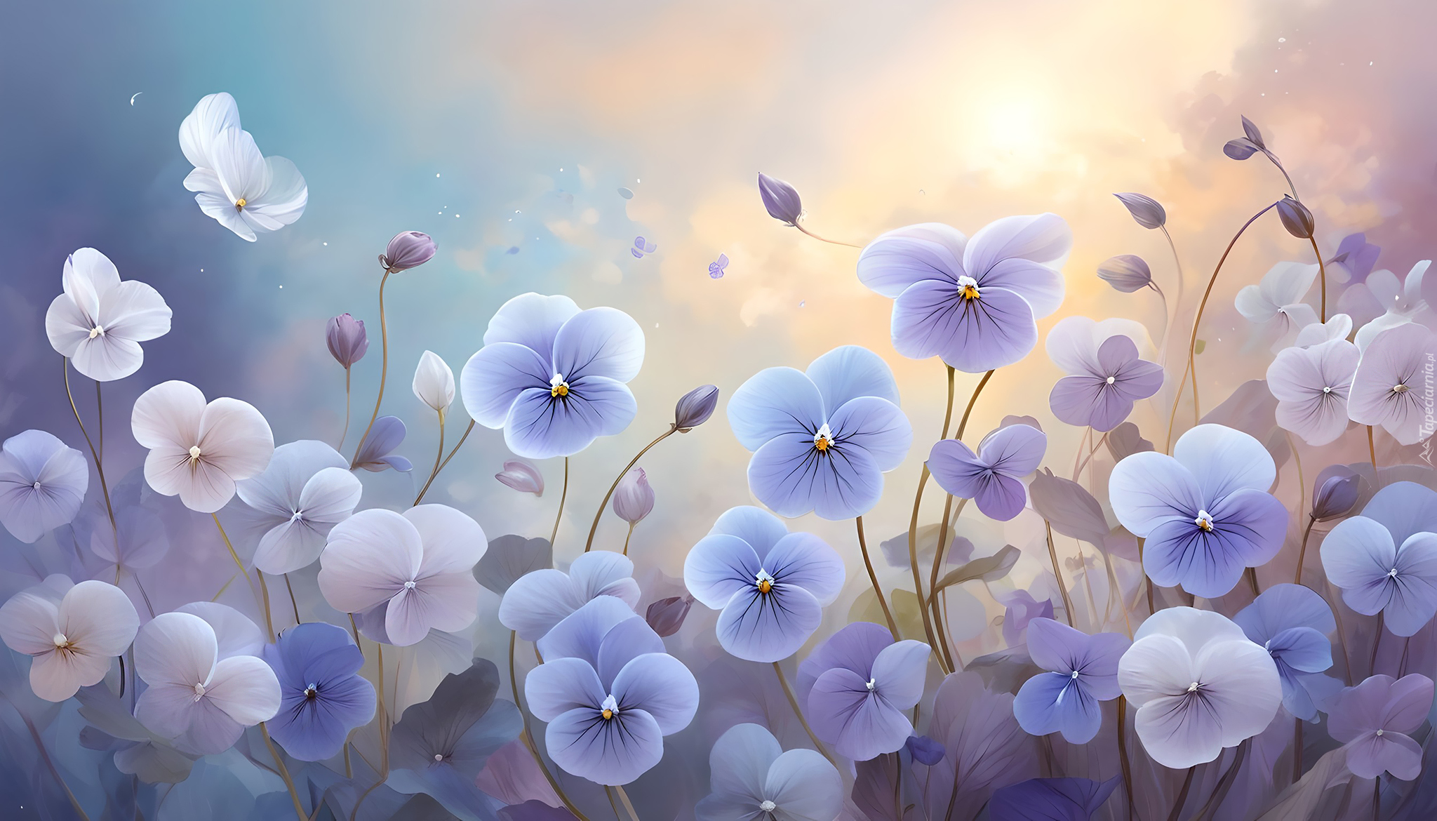 Edytor tapety: Grafika z jasnofioletowymi bratkami