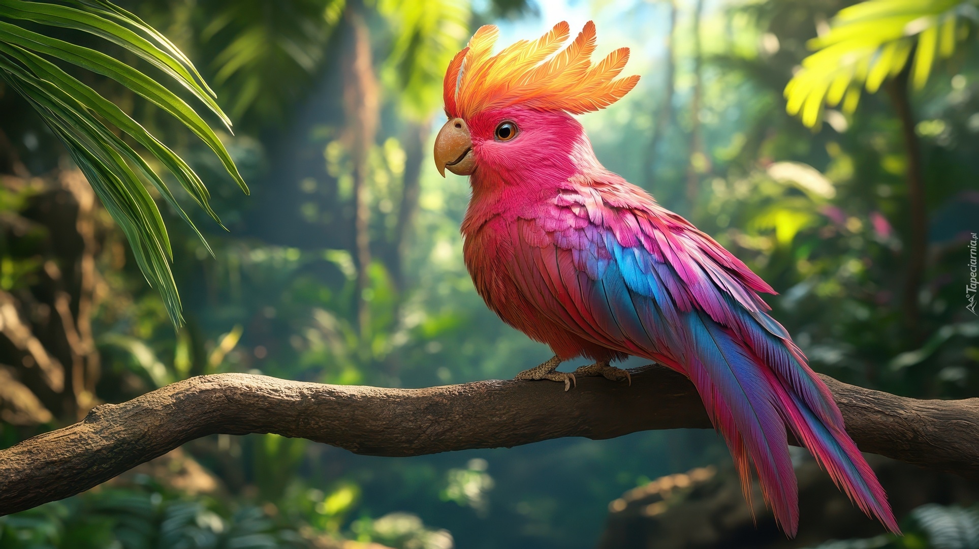 Edytor tapety: Różowo-niebieska kakadu w grafice