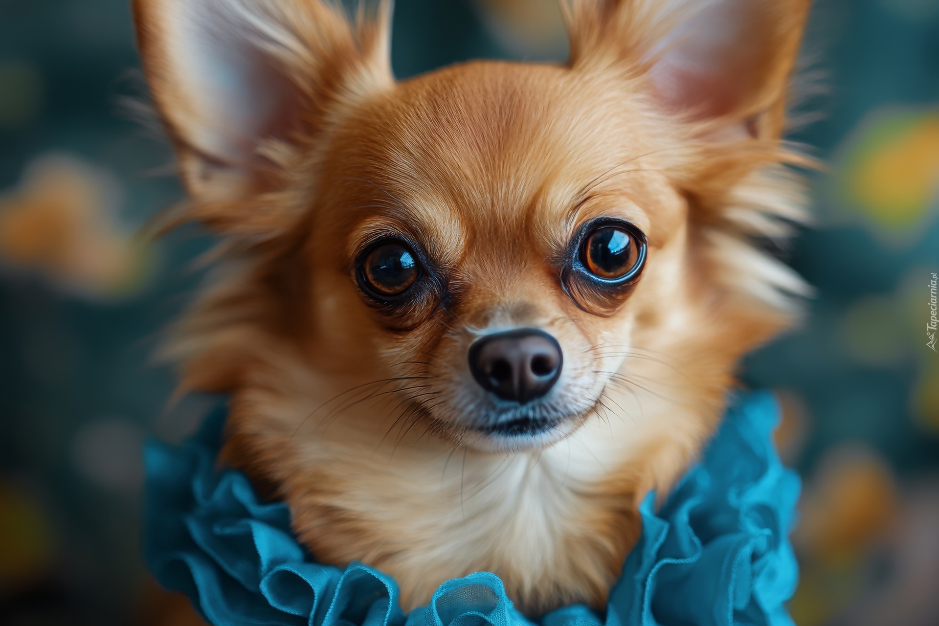 Edytor tapety: Chihuahua długowłosa w niebieskim ubranku