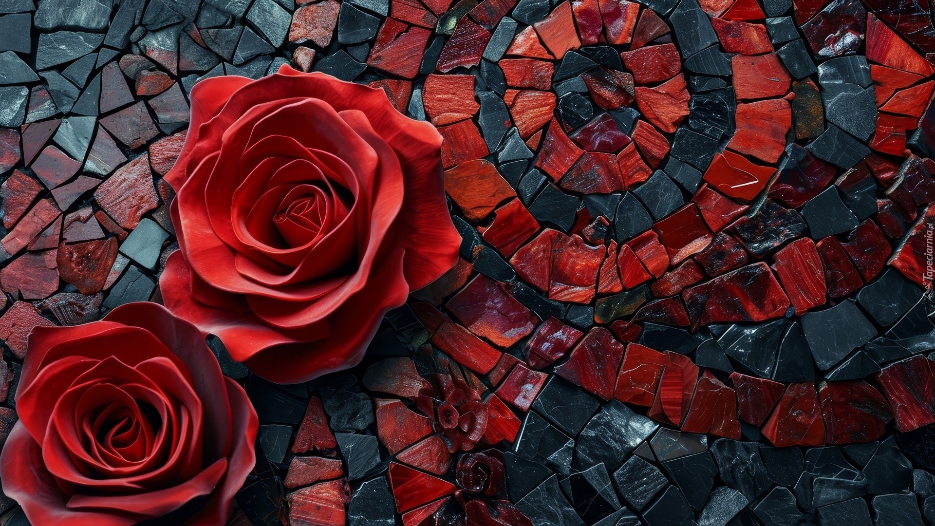 Edytor tapety: Czerwone róże ułożone na mozaice