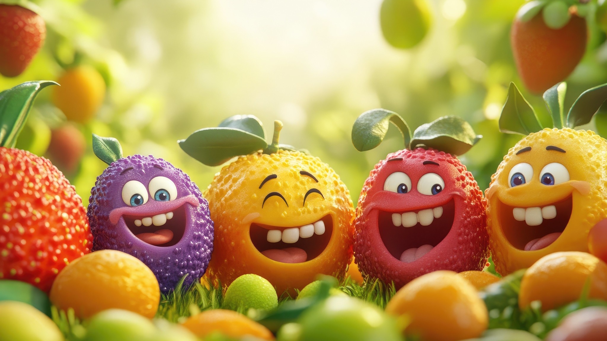 Edytor tapety: Wesołe kolorowe owoce w grafice
