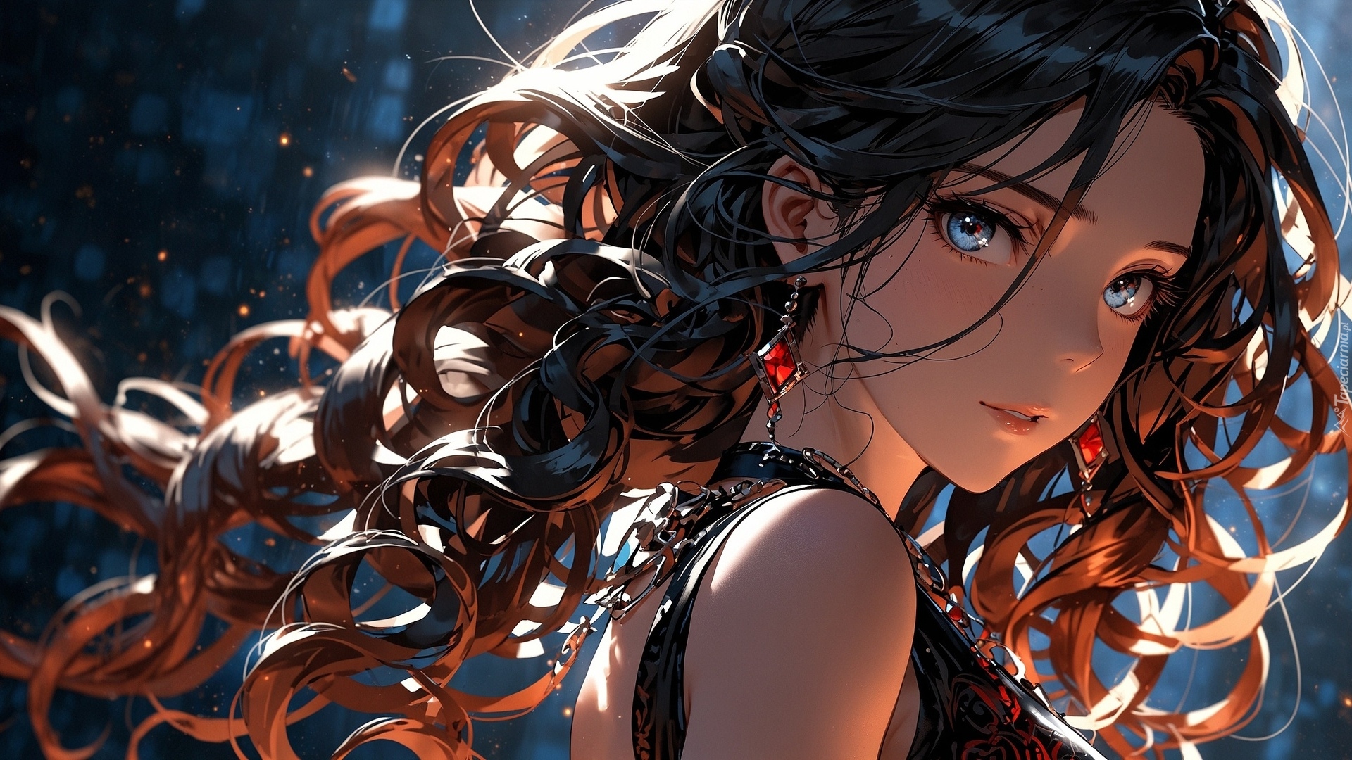 Edytor tapety: Niebieskooka dziewczyna z długimi kręconymi włosami w anime