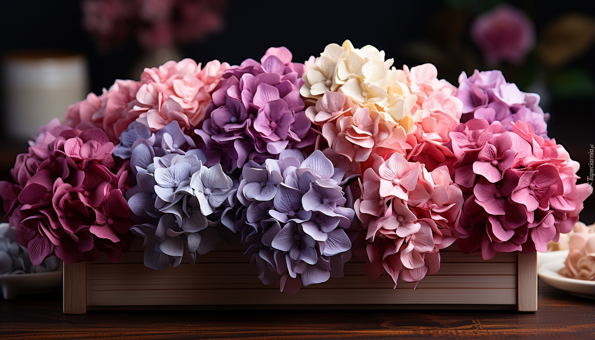 Edytor tapety: Kolorowe hortensje w skrzynce